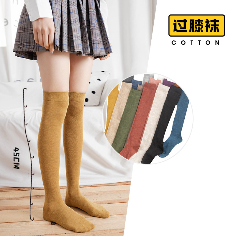 易凡靴下の女性の足の靴下の潮の春秋の純色と膝の靴下の日系jkの長い筒の学院の風は膝の靴下の大きい足の靴下を過ぎます。