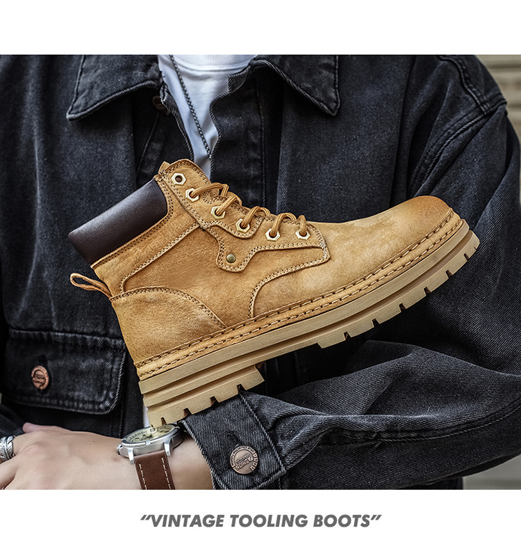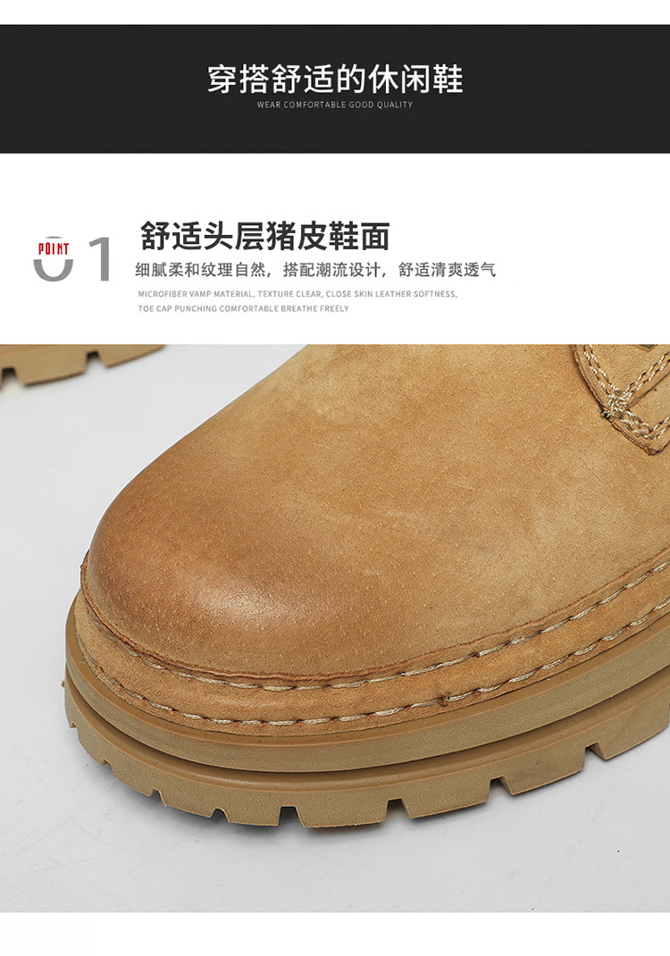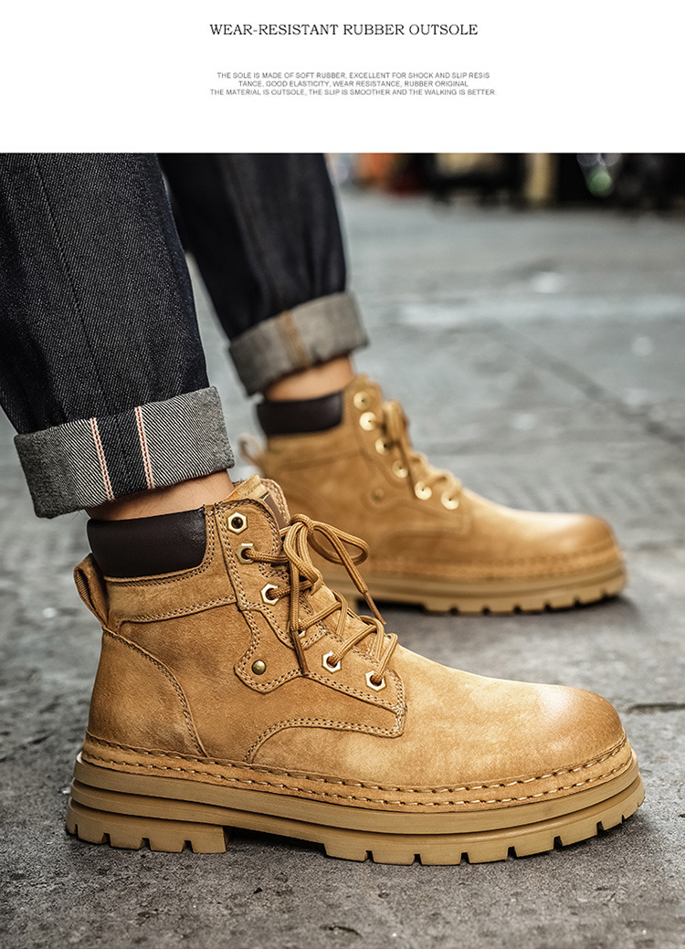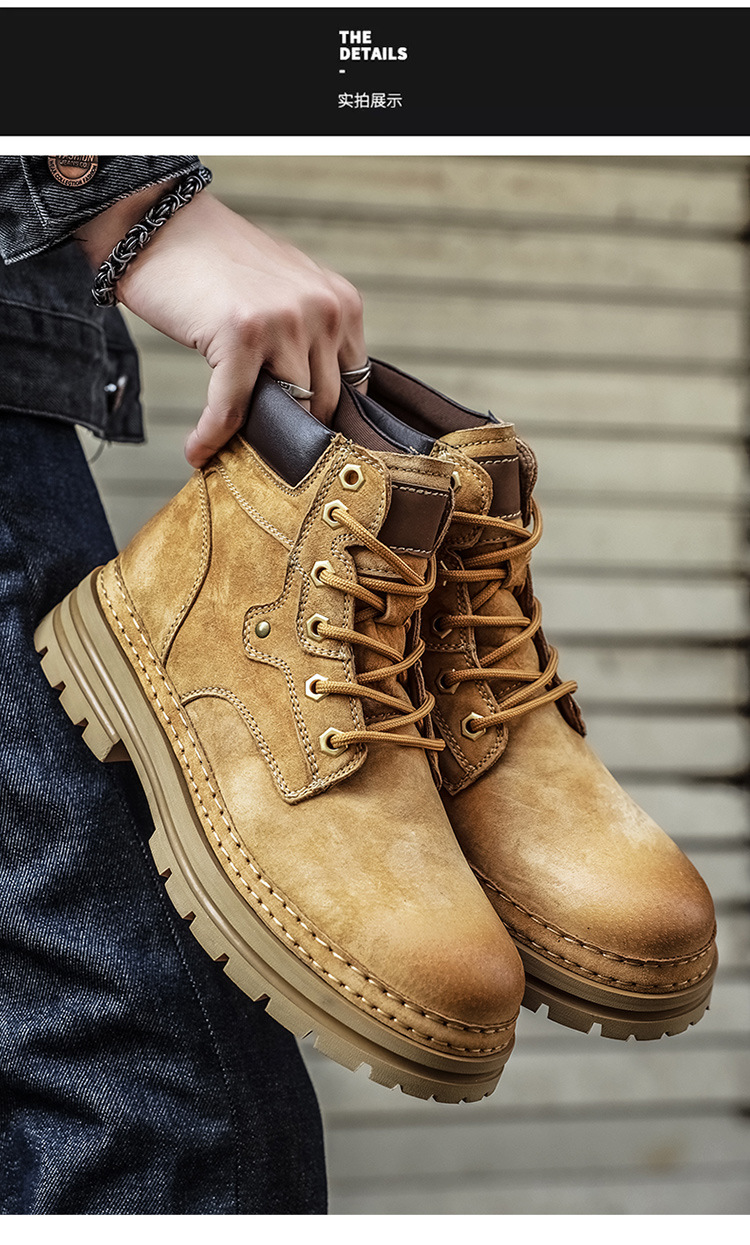 真皮厚底增高马丁靴男2025秋季户外休闲百搭大黄靴男款耐磨透气鞋