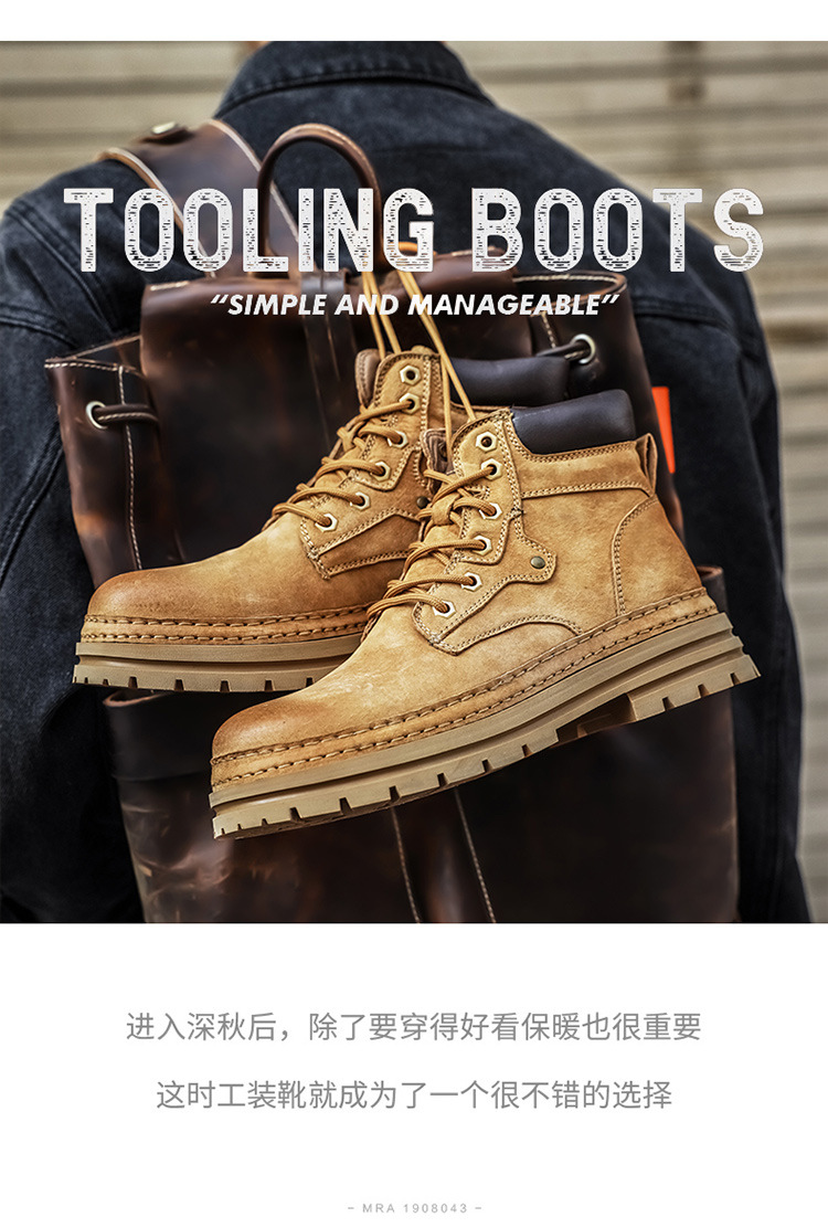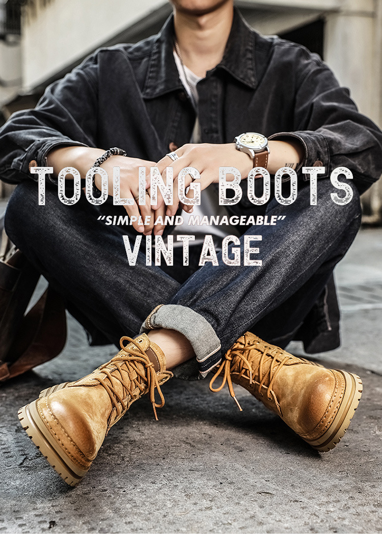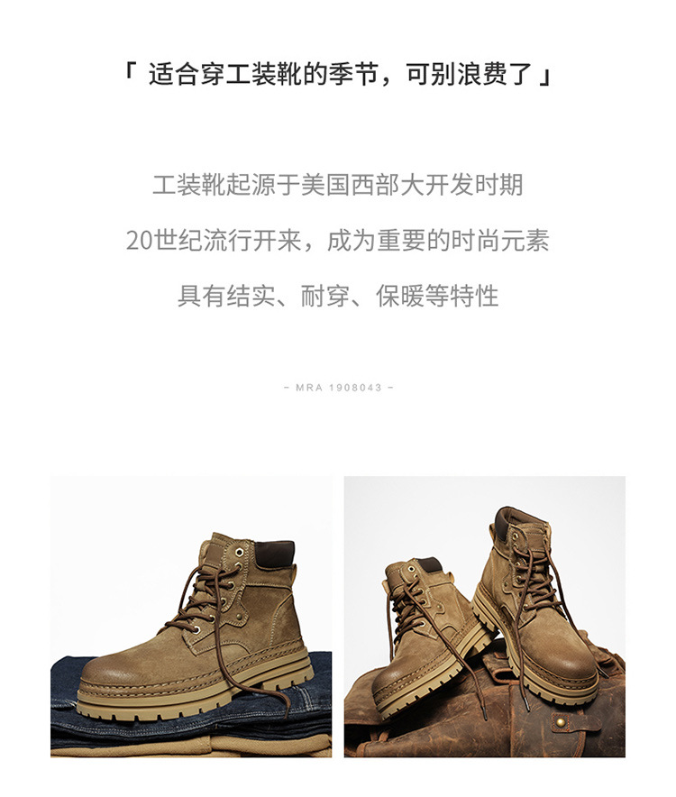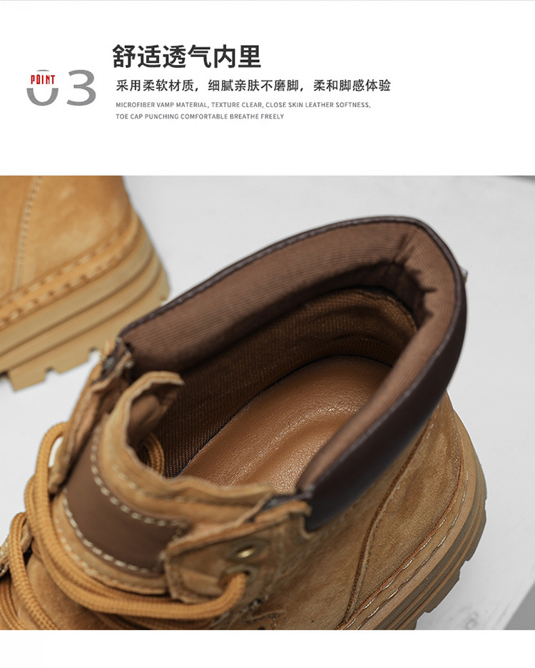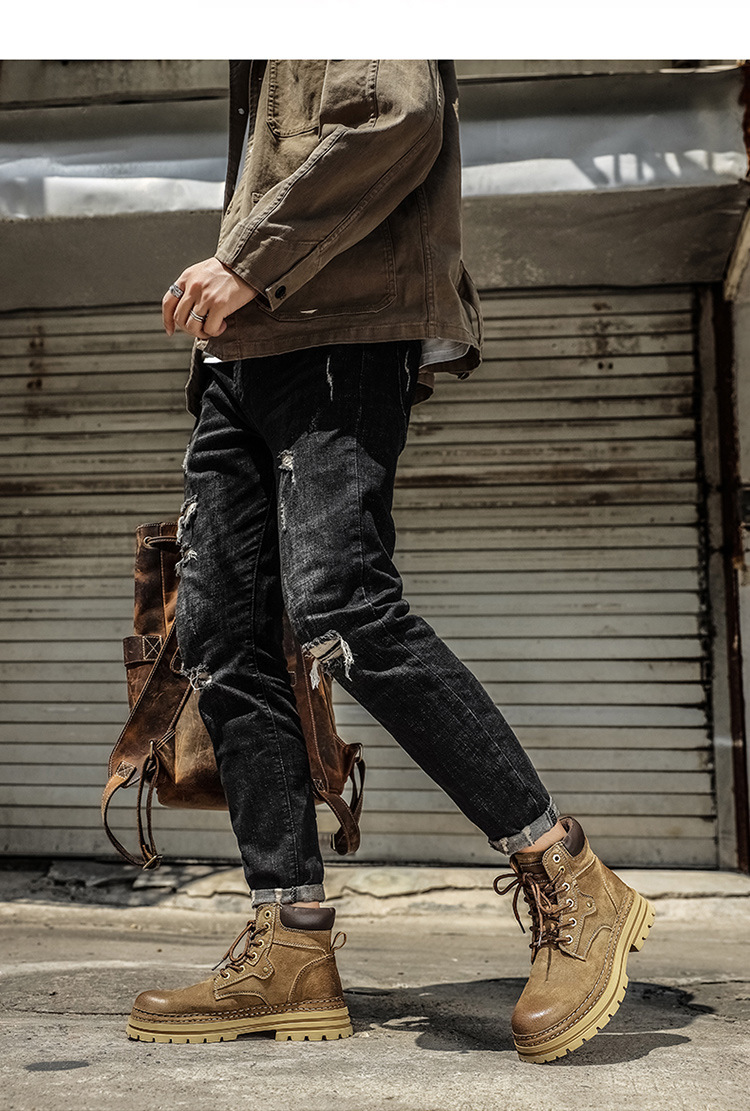真皮厚底增高马丁靴男2025秋季户外休闲百搭大黄靴男款耐磨透气鞋