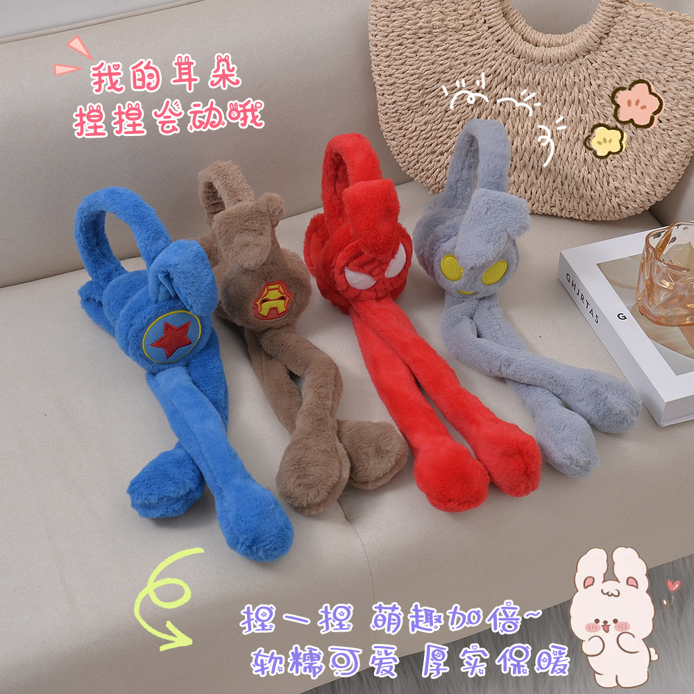 卡通蜘蛛侠动漫耳朵会动毛绒耳罩冬季防风保暖护耳可爱儿童耳包