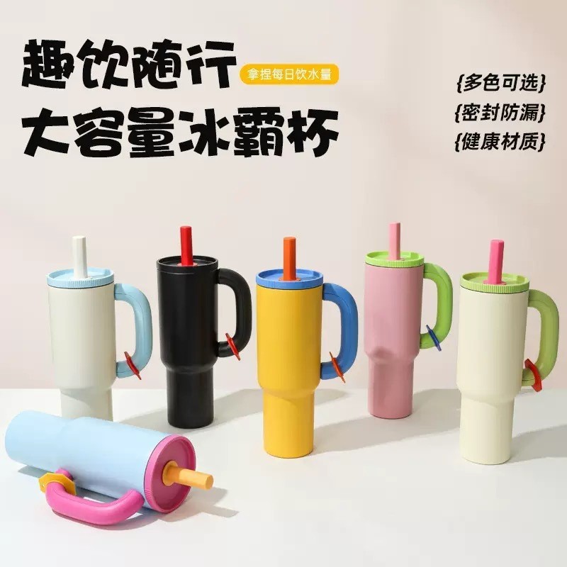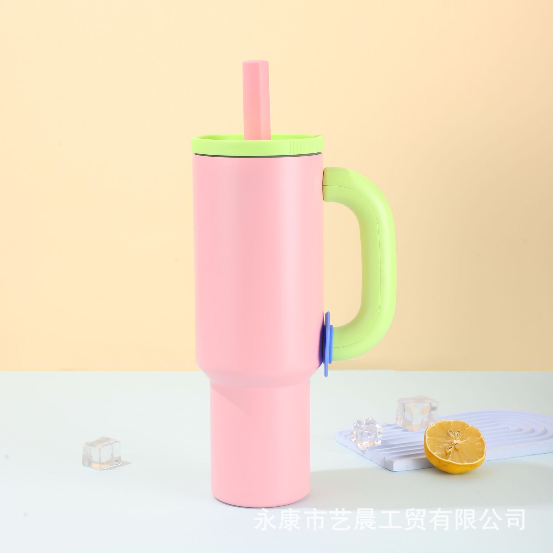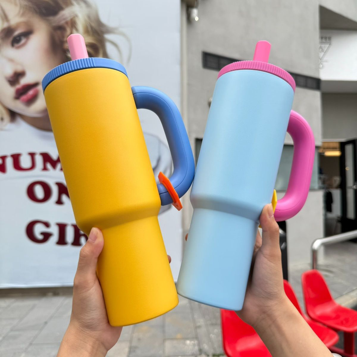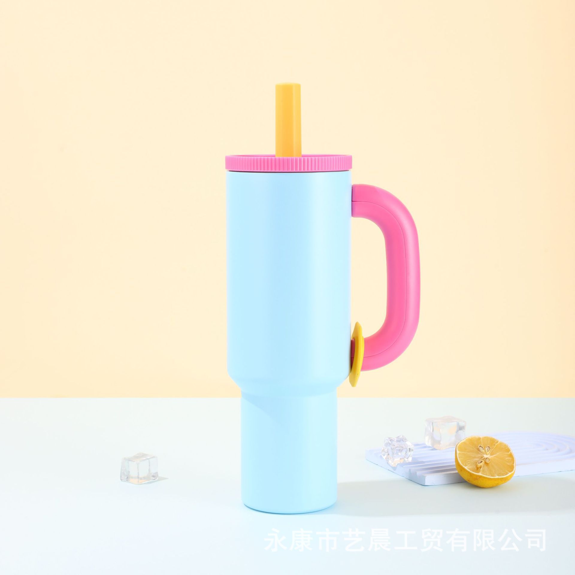 高颜值40oz手柄汽车杯多巴胺色系带吸管保温杯户外便携保冷冰霸杯