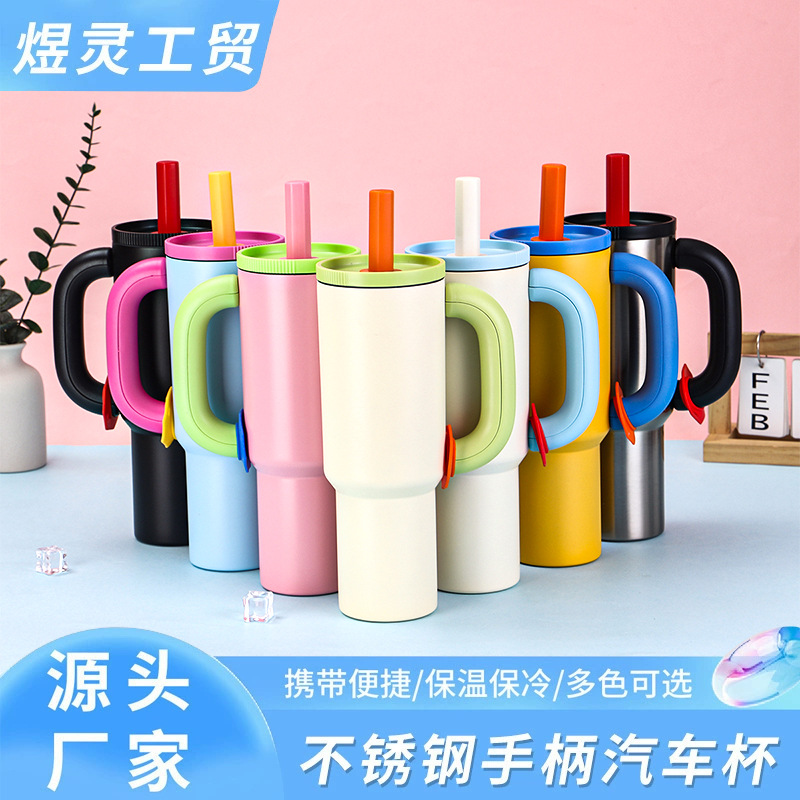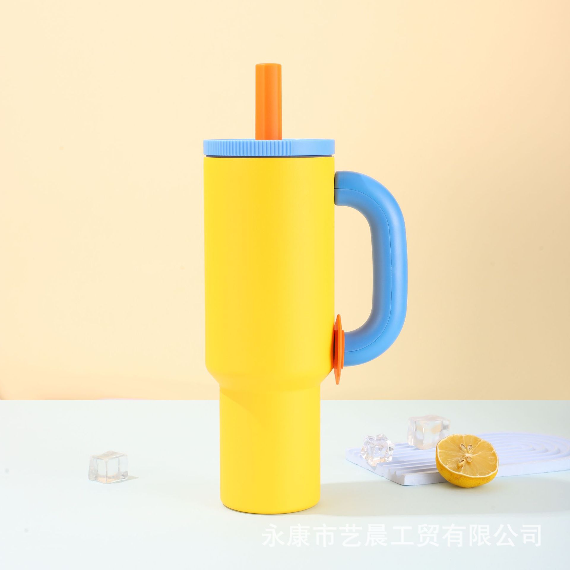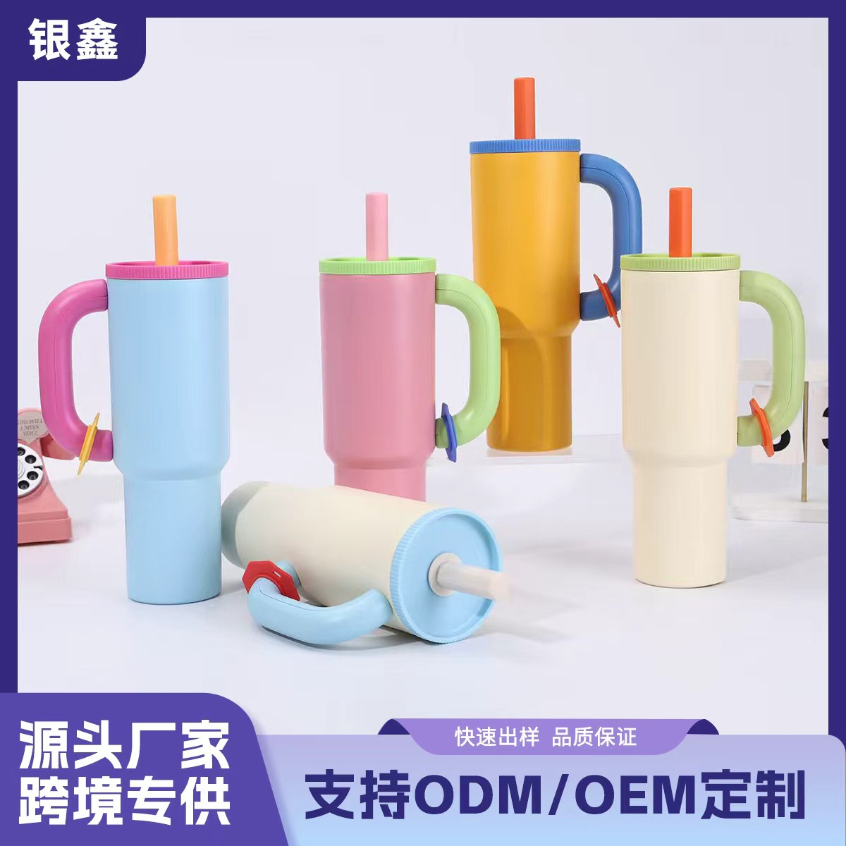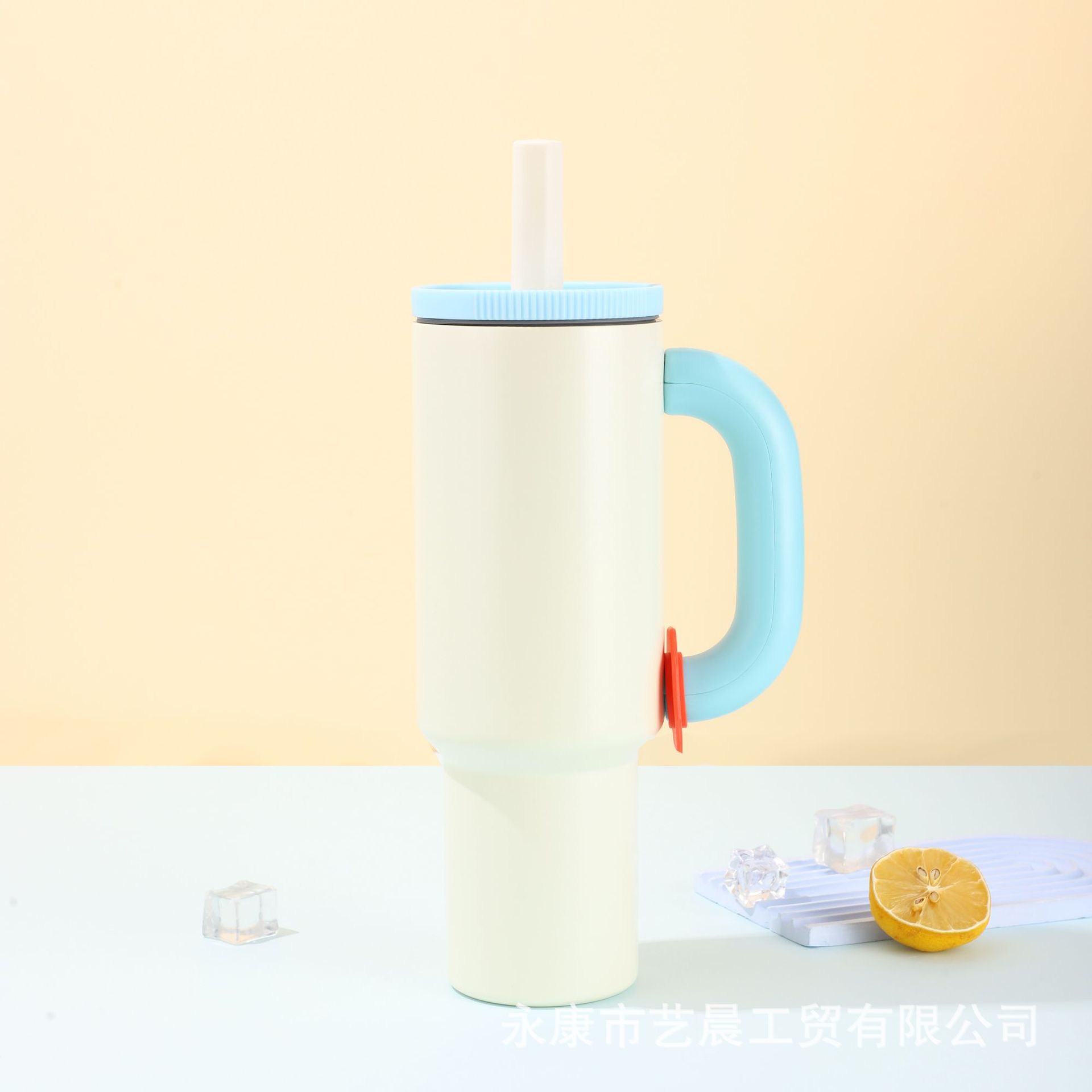 高颜值40oz手柄汽车杯多巴胺色系带吸管保温杯户外便携保冷冰霸杯