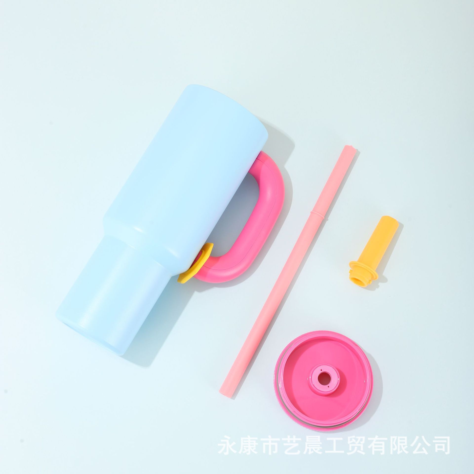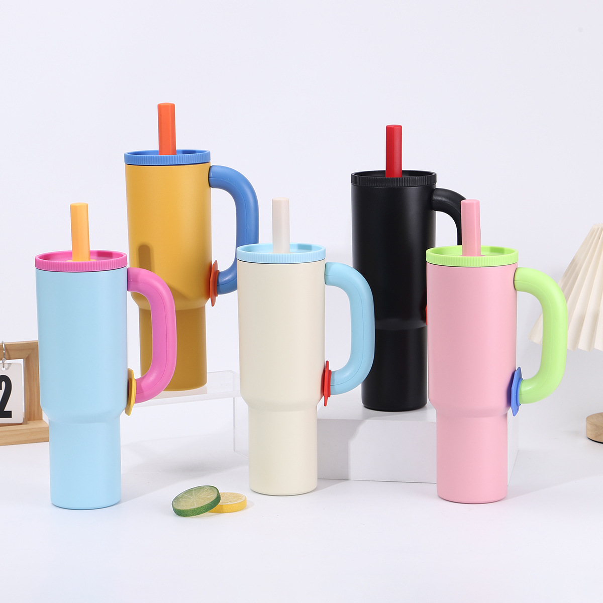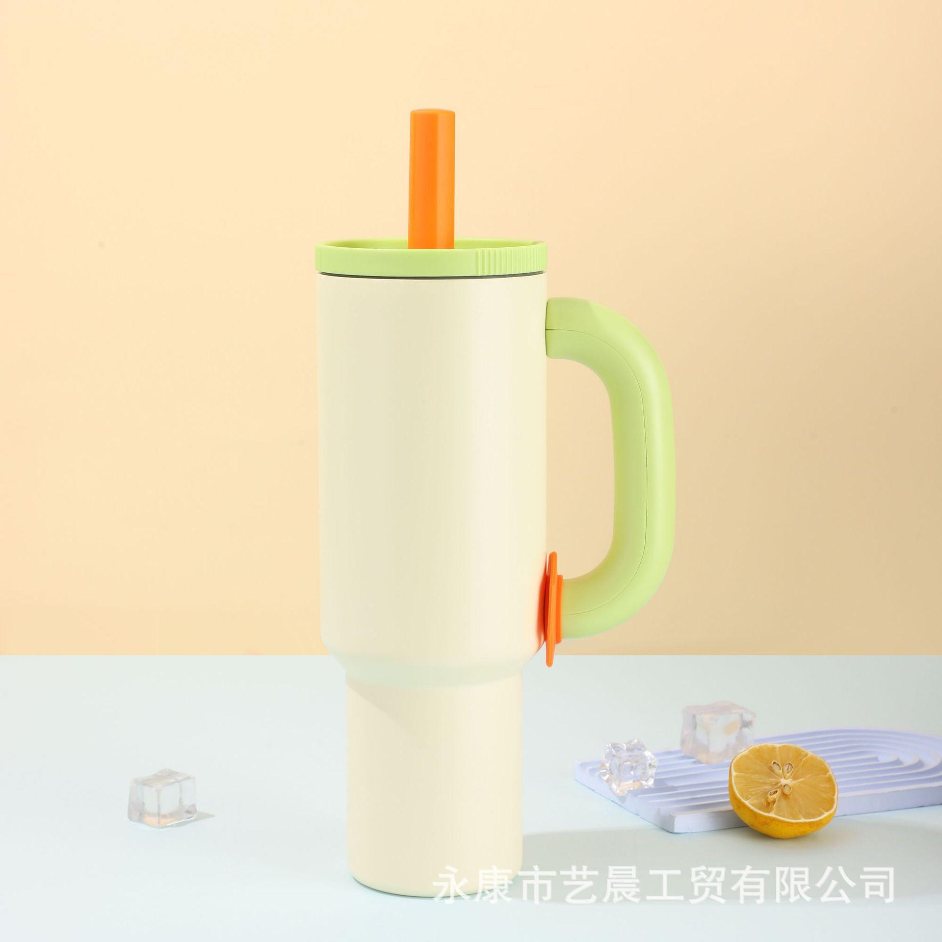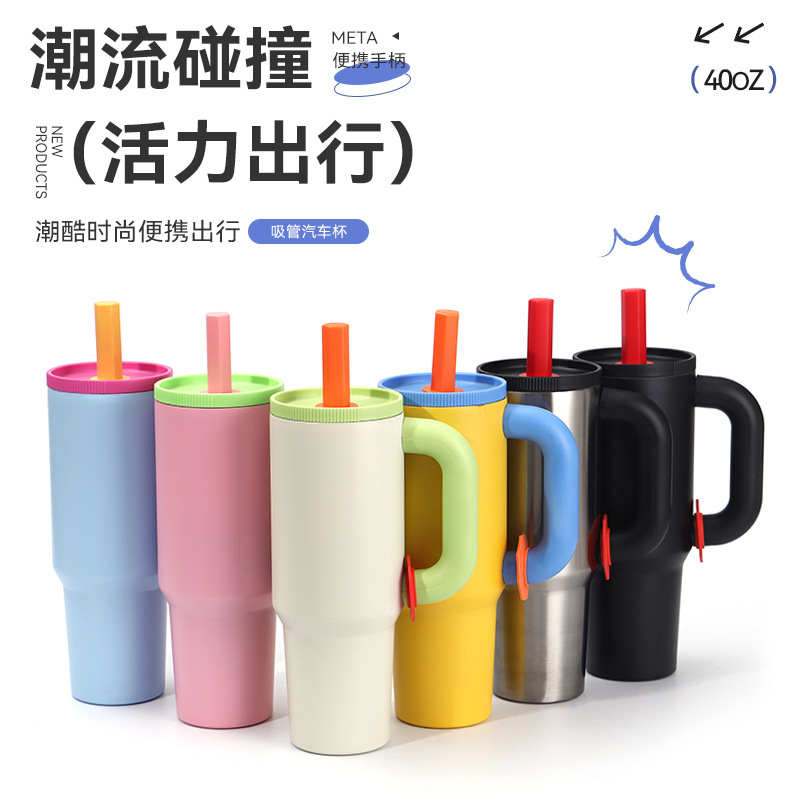 高颜值40oz手柄汽车杯多巴胺色系带吸管保温杯户外便携保冷冰霸杯