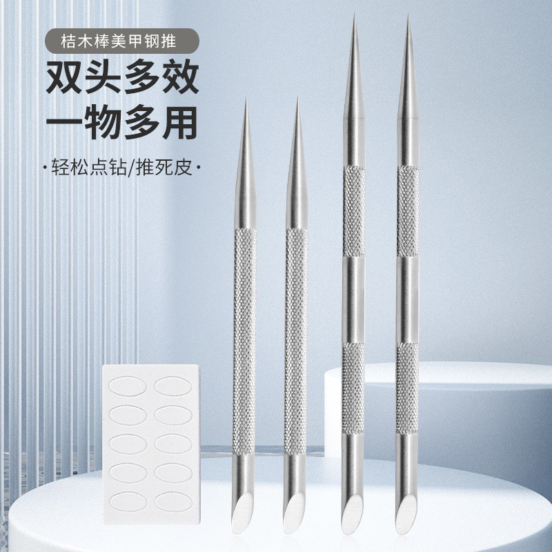 修甲美甲斜面圆圈钢推俄式双头斜推去死皮修指甲前置砂搓美甲工具
