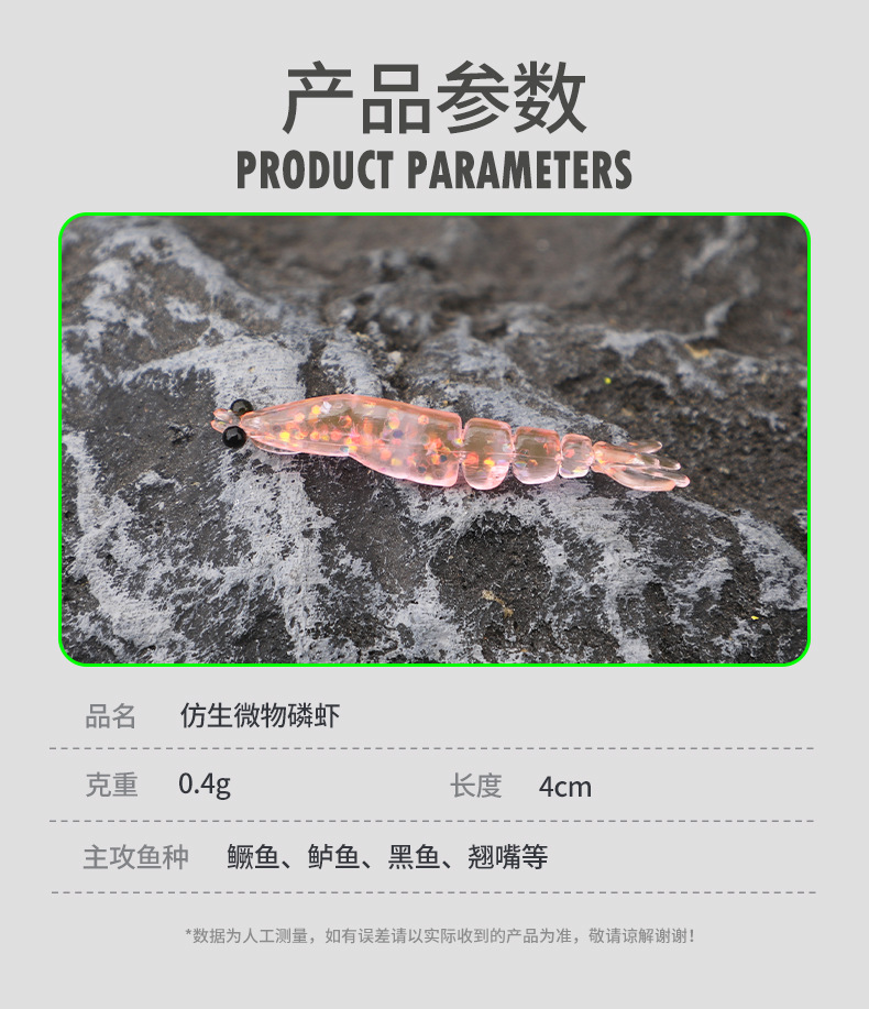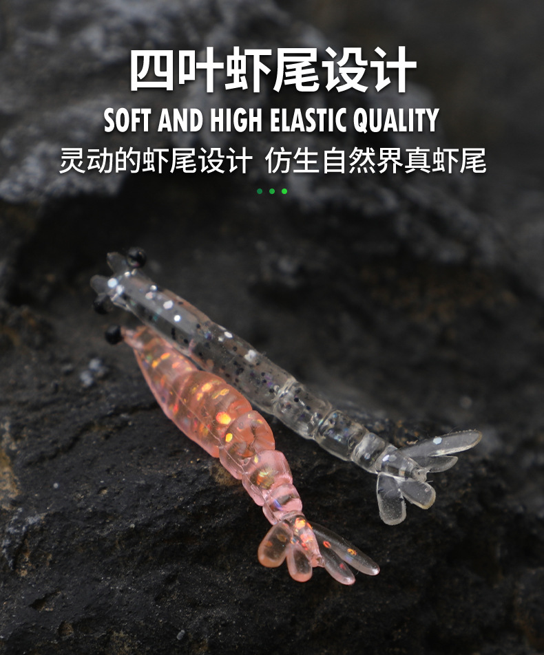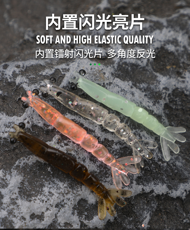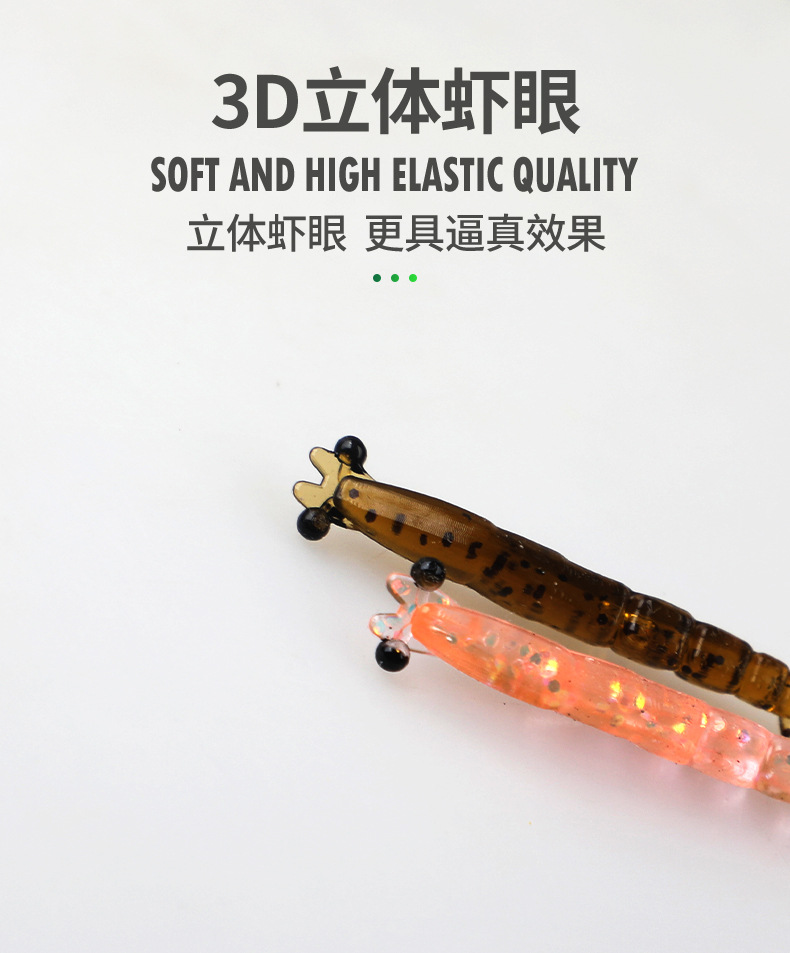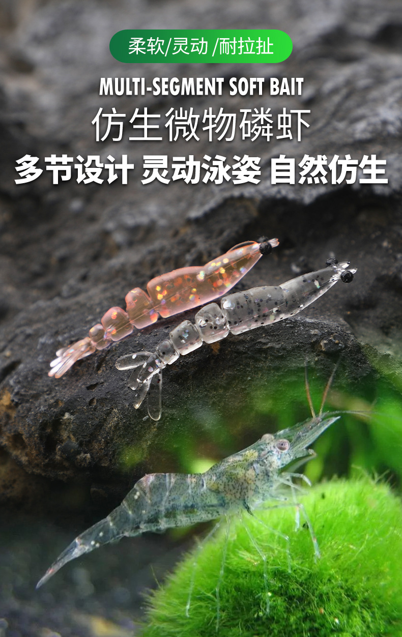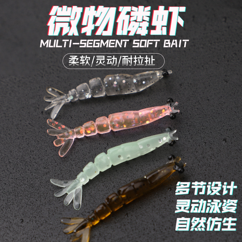 新款多节虾4厘米0.4克根钓路亚软饵直饵多节灵动翘嘴鲈鱼鳜