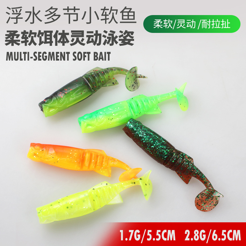 浮水10条1包T尾微物根钓仿生软饵鱼饵路亚饵1.7g 55mm/2.8g 65mm