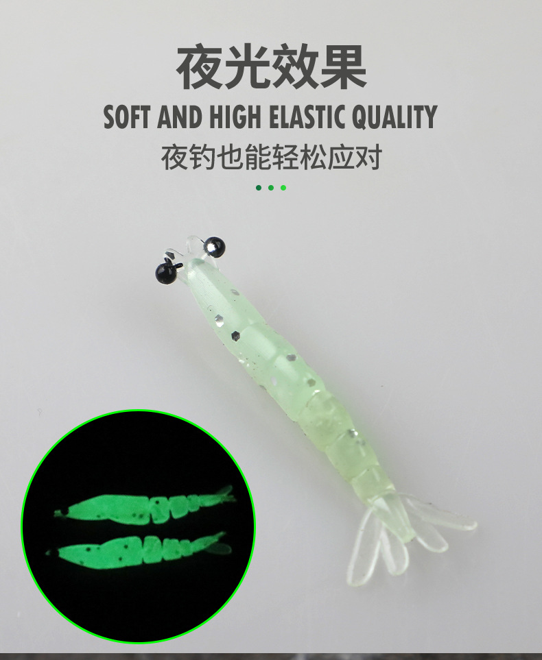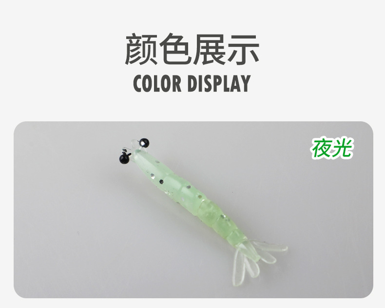 套盒20条装夜光涂层四叶虾尾4厘米0.4克冰钓多节鱼软饵虾路亚假饵