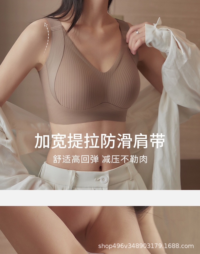 双重调整型女士内衣聚拢收副乳文胸吊带上托运动美背无钢圈抹胸罩