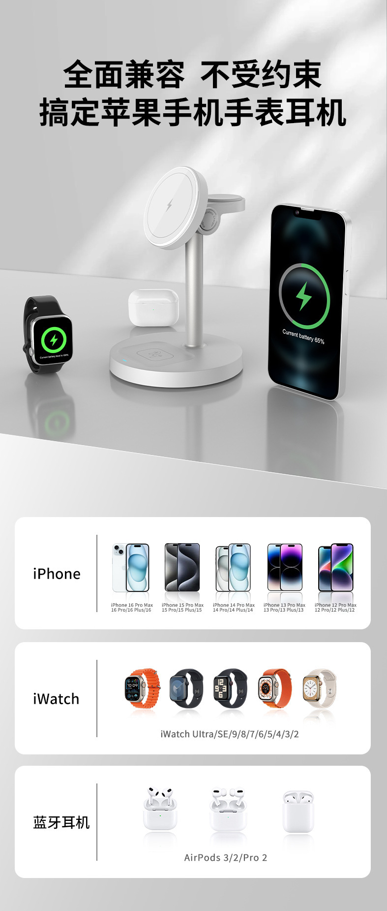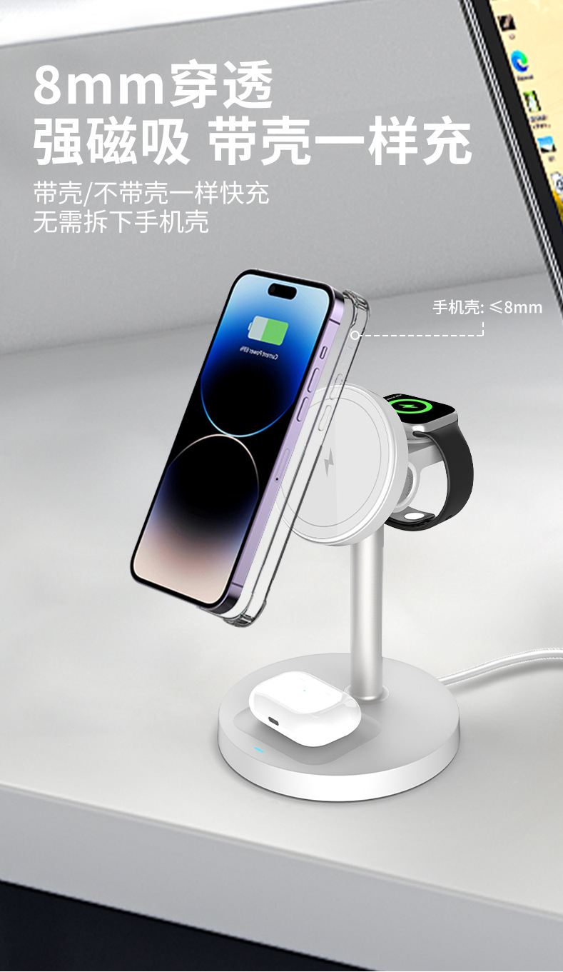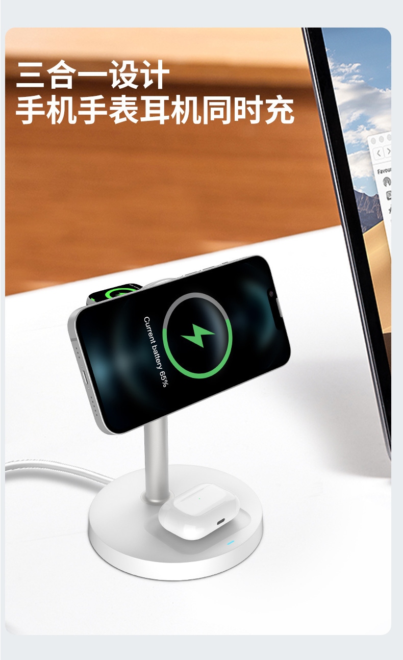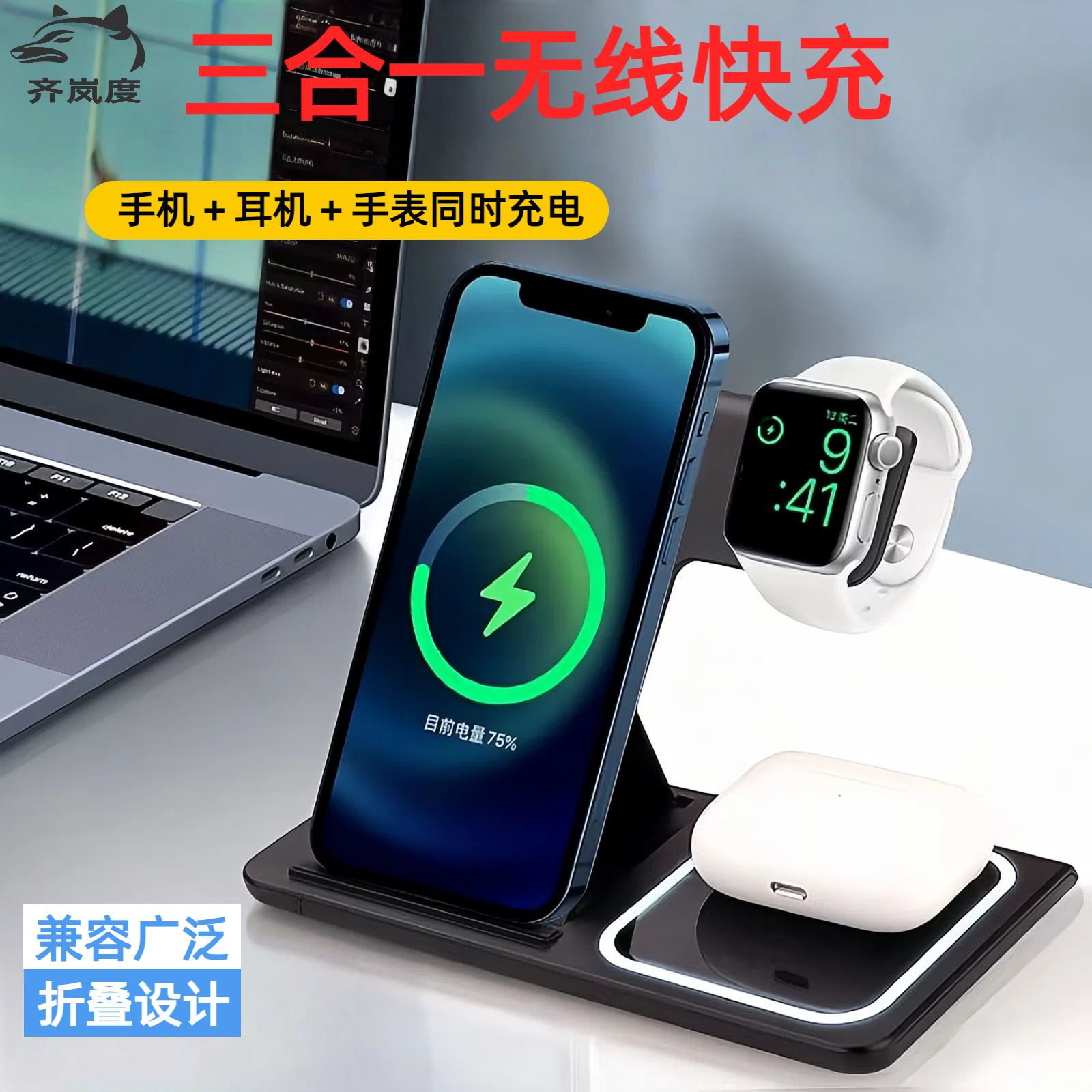 爆款工厂三合一磁吸无线快速充电器手机耳机手表支架充快充闪充