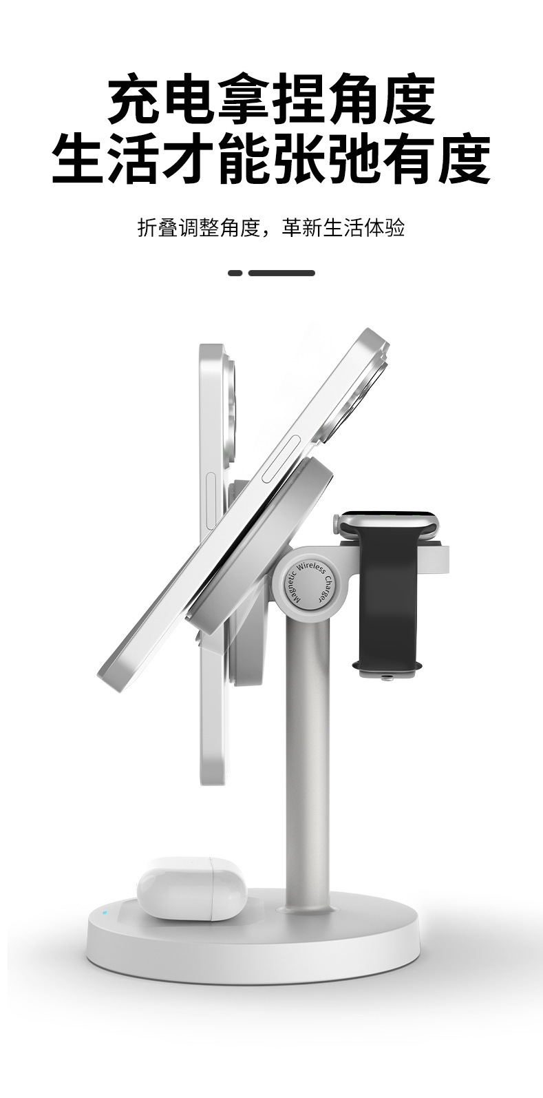 スリーインワンワイヤレス充電器スタンド磁気高速充電回転充電器折りたたみ新しいスリーインワンワイヤレス充電器
