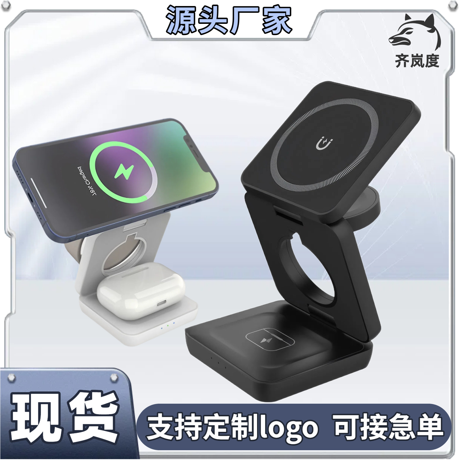 现货桌面三合一磁吸无线充电器底座快充折叠式手机支架15W充电站
