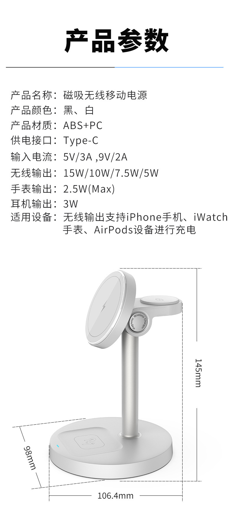 颜色 黑色【三合一无线充】桌面手机支架,白色【三合一无线充】桌面手机支架