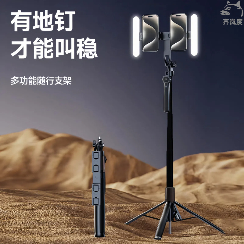 スマートフォロー雲台自撮り棒顔追跡四脚屋外生放送灯一体式着地携帯電話スタンド
