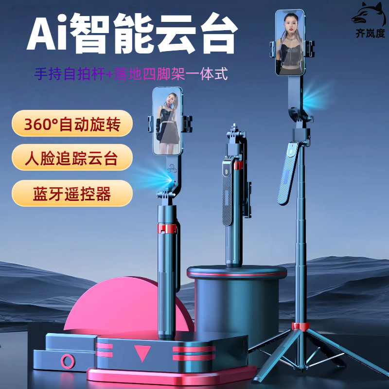 AI写真雲台自撮り棒顔追跡手持ち安定器360自動回転補光灯携帯電話スタンド