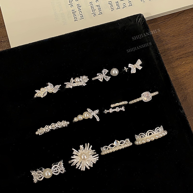 「芒星捧钻」韩版简约ins风捧花点钻系列开口戒指女小众百搭指环