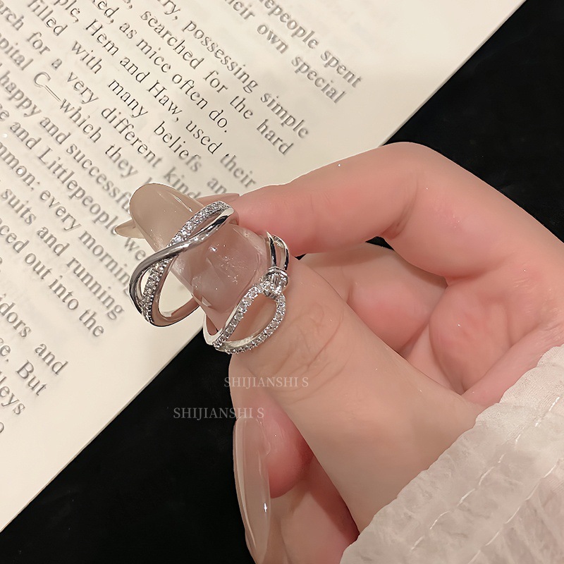 「冰璘透白」超闪轻奢风流苏星芒戒指女精致小巧简约气质百搭指环