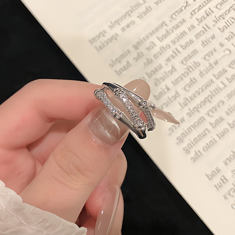 精巧なドリルいっぱいのジルコンの素の輪の王冠の開口の指輪の女性の気質の百合のファッションの食事の指輪の冷たい風の指の環の潮
