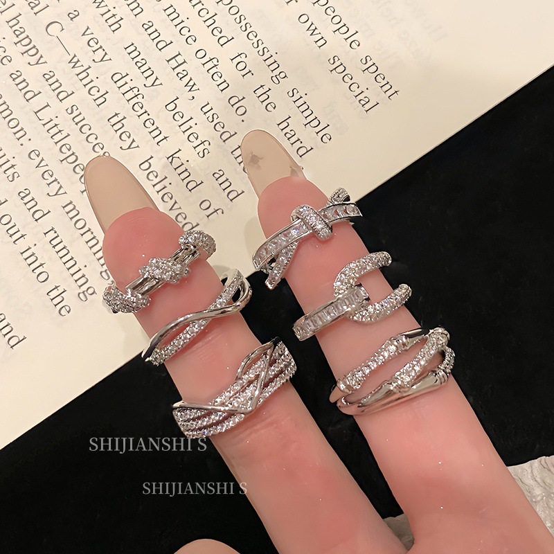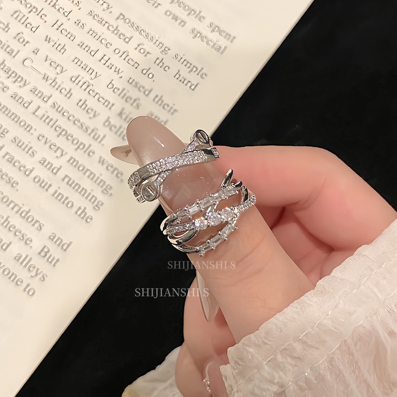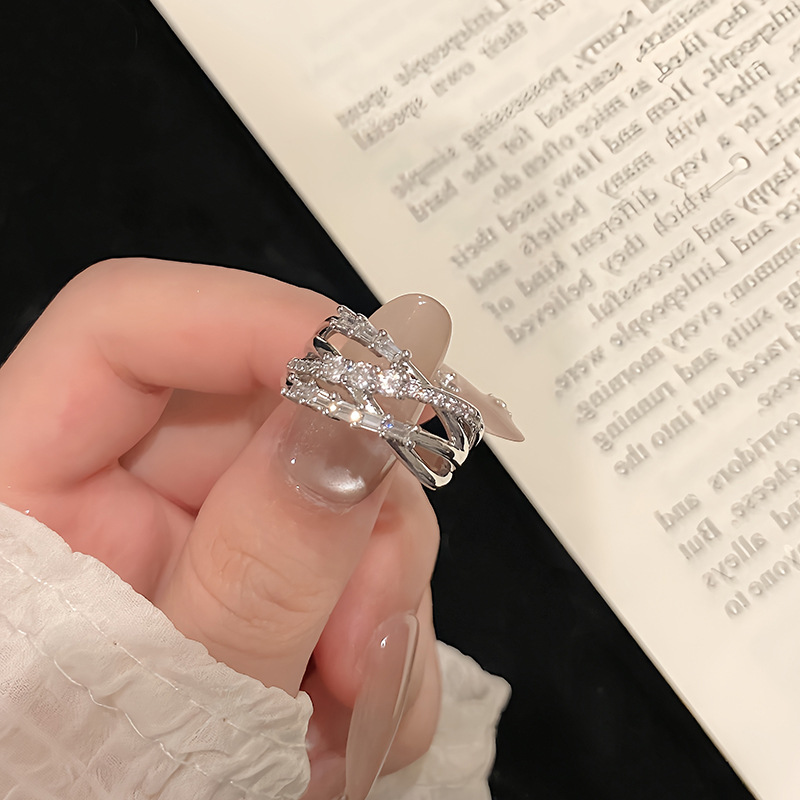 「漫天星辰」欧美满钻多层线条开口戒指女小众轻奢时尚高级感指环