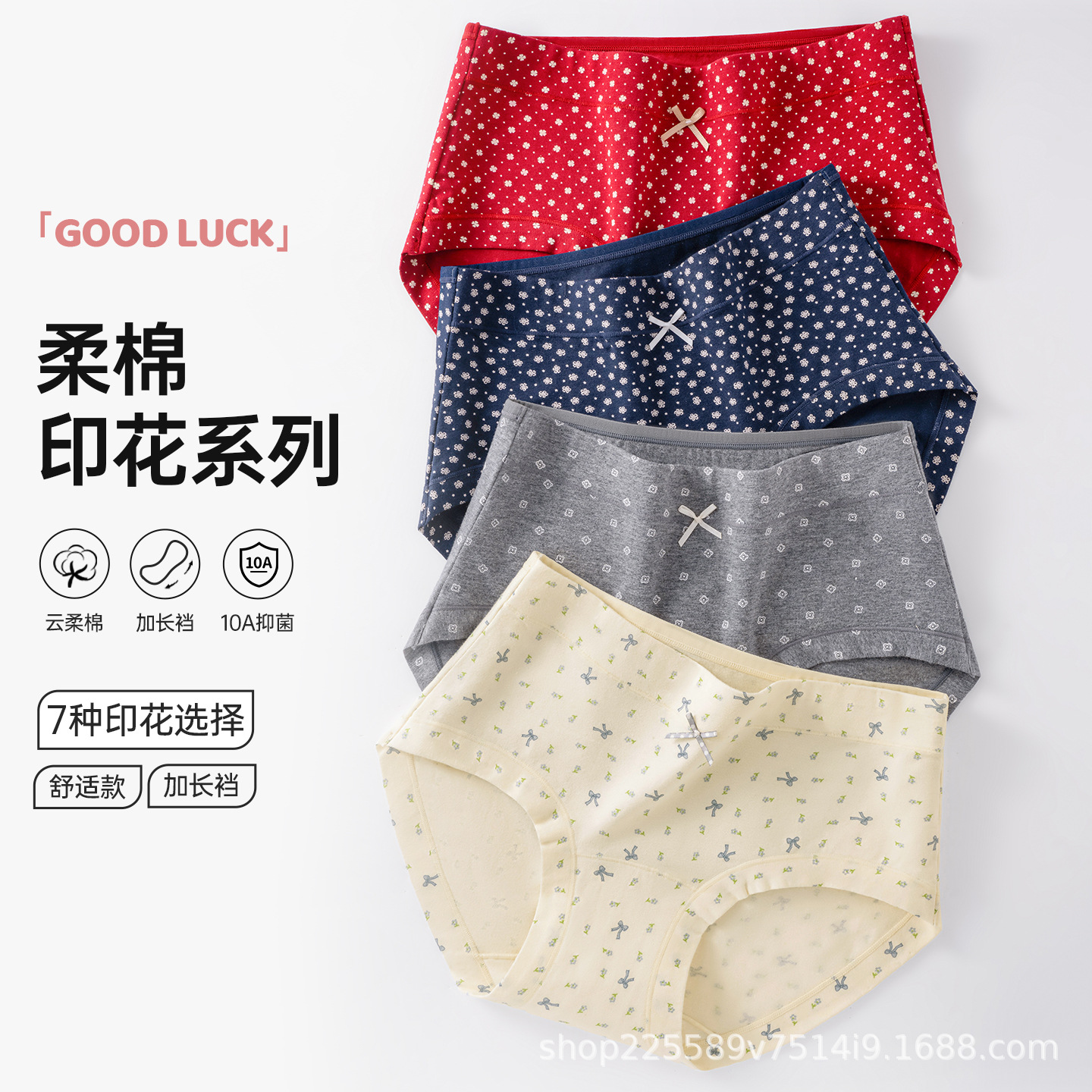新款波点加长裆碎花10A纯棉中腰女士内裤柔软包臀抗菌三角棉内裤