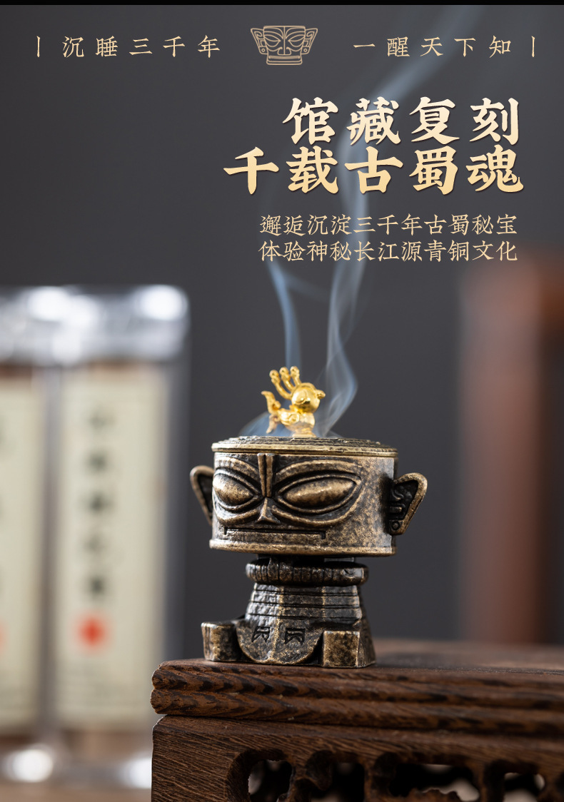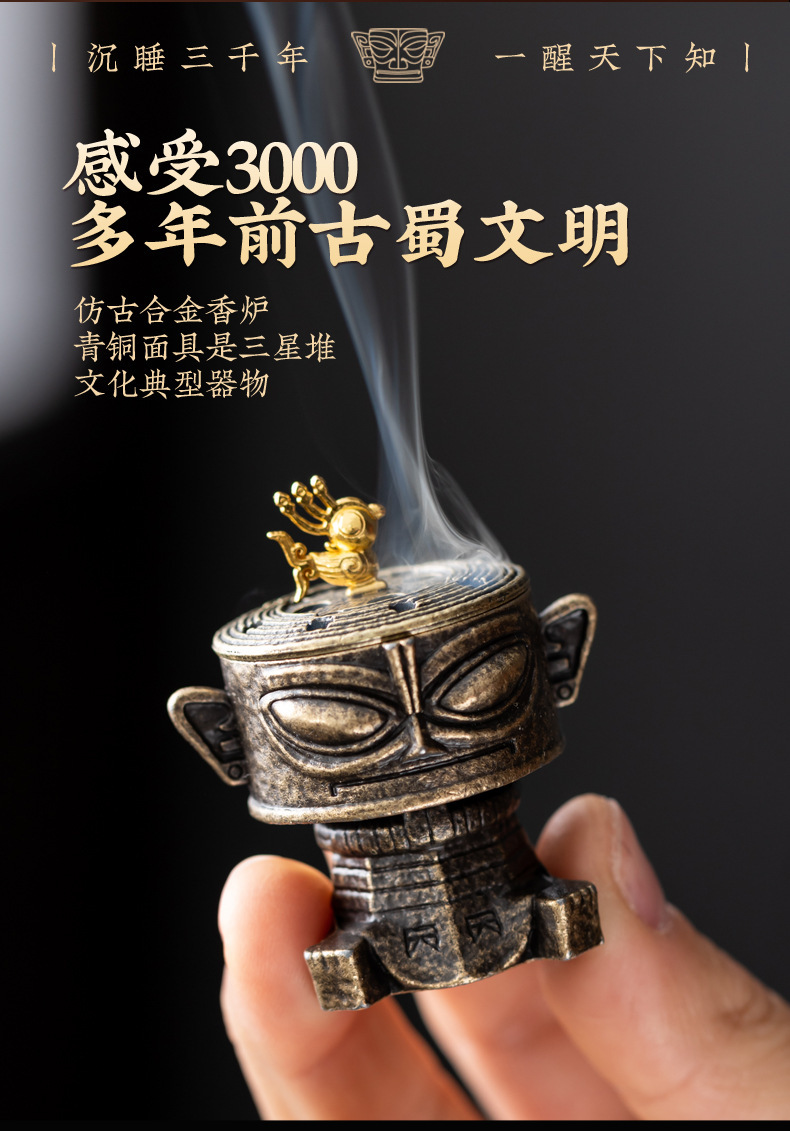 三星堆合金香炉鹅梨帐中香沉香檀香茶道创意香炉室内家用禅意摆件