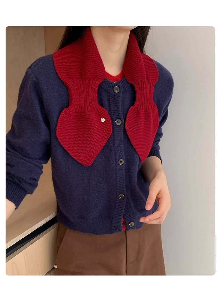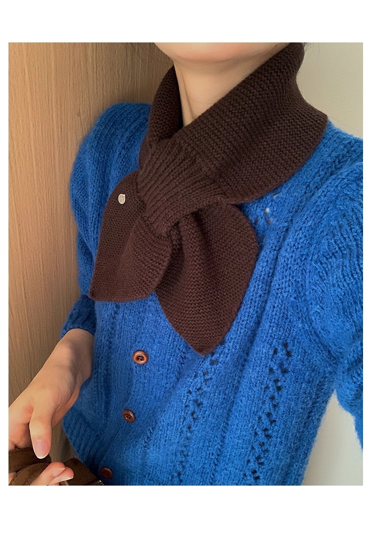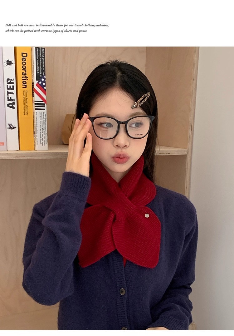 高品质秋冬100羊毛交叉桃心纯色针织小围脖保暖护颈防寒围巾女潮