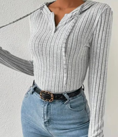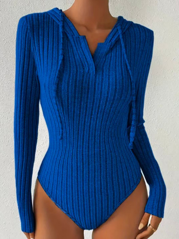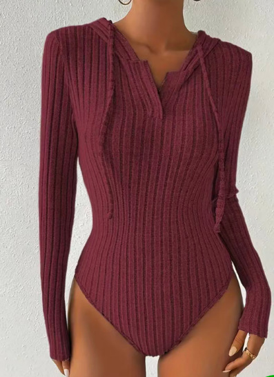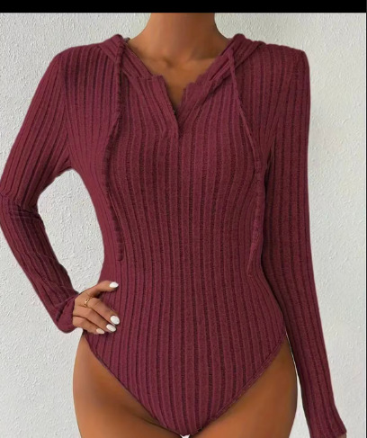 亚马逊独立站2025秋季新款欧美跨境磨毛坑条连帽纯色针织连体打底