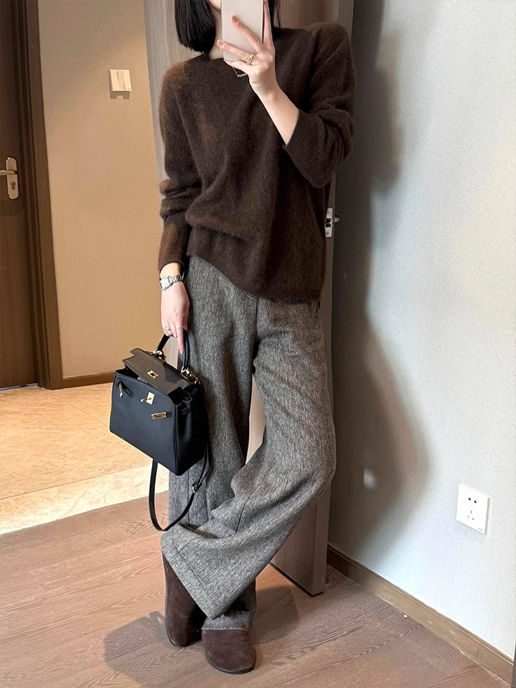 CHAO级推荐!灰色羊毛呢阔腿裤女秋冬保暖呢子裤柔软磨毛羊绒长裤