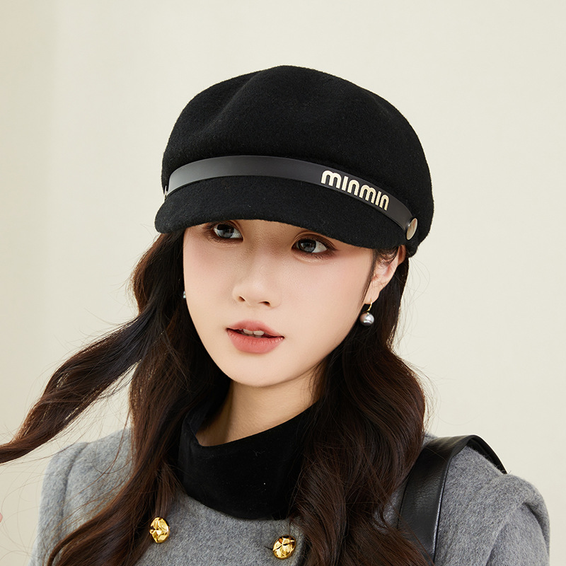 25新款鸭舌帽秋冬女羊毛保暖爆款八角帽日系复古保暖报童帽画家帽