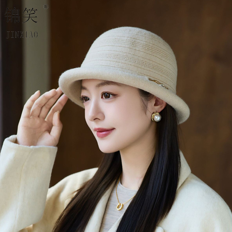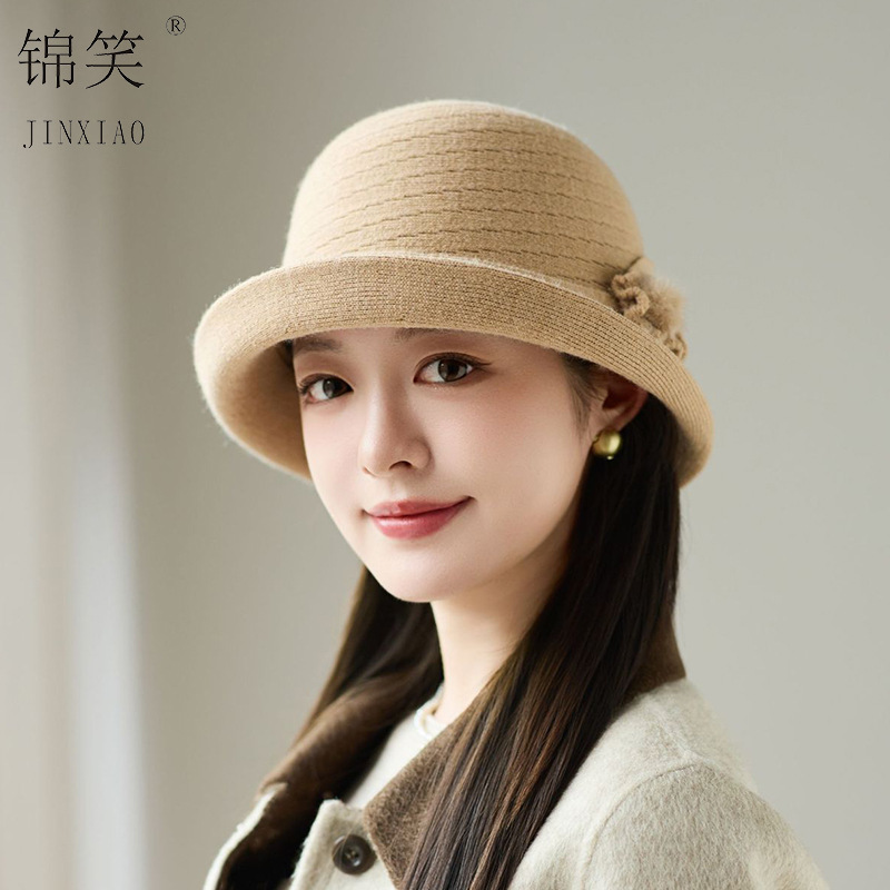 2025秋冬针织盆帽女士新款羊绒优雅礼帽韩版时尚简约保暖妈妈帽子