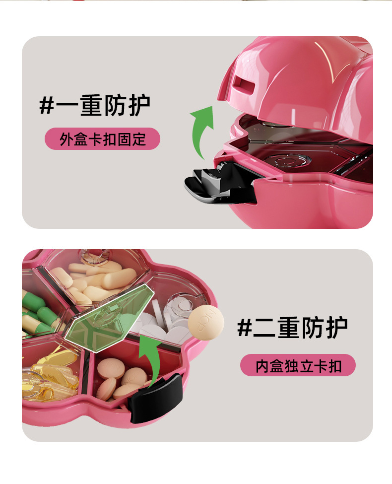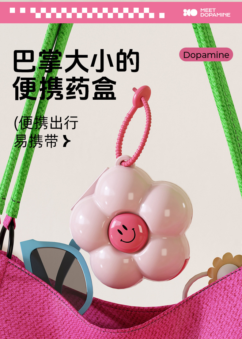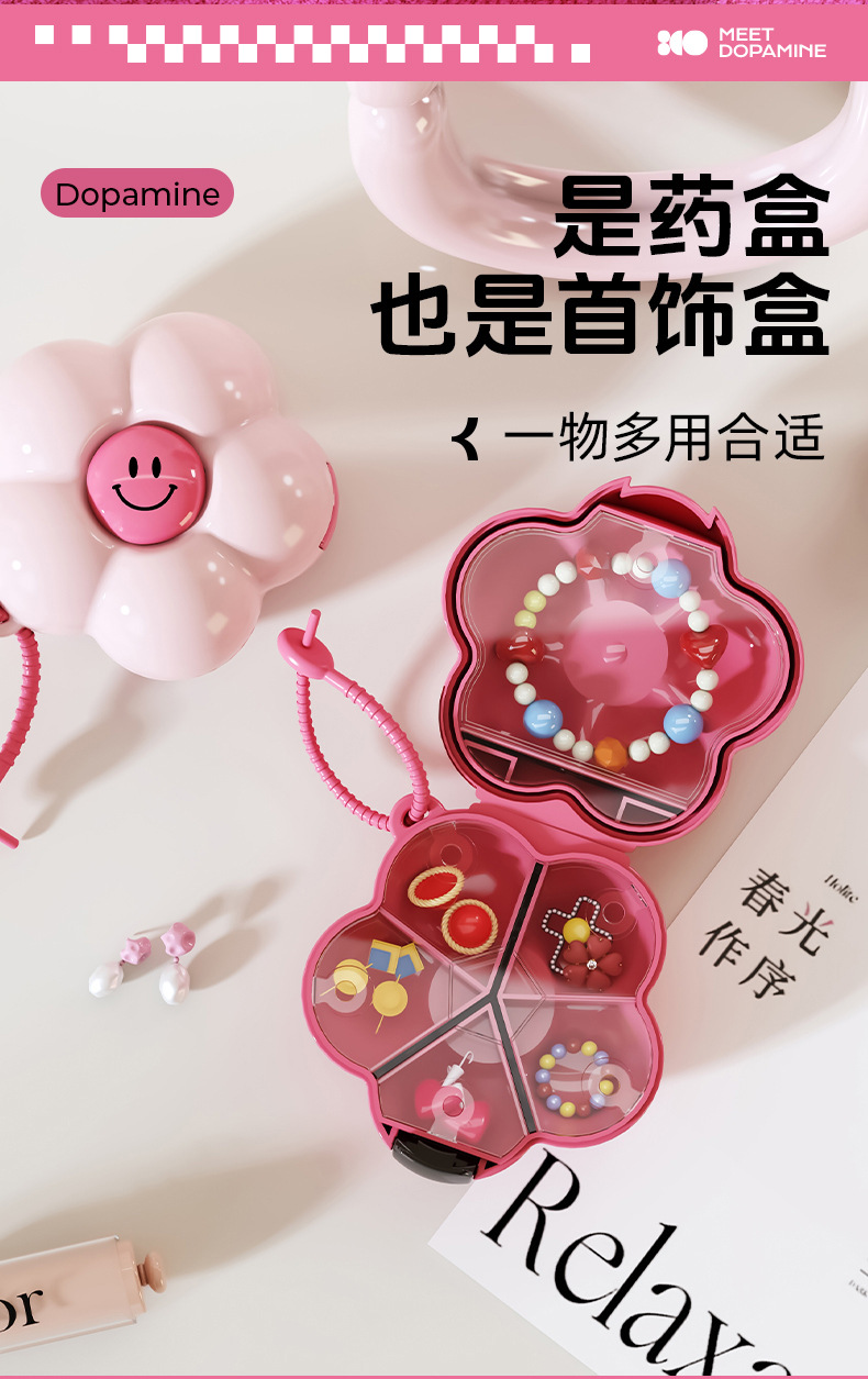 多巴胺花朵便携式药盒七天装旅行多功能药盒塑料带分隔首饰收纳盒