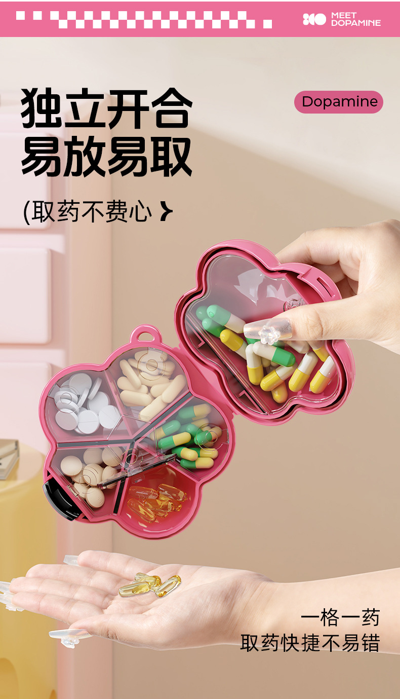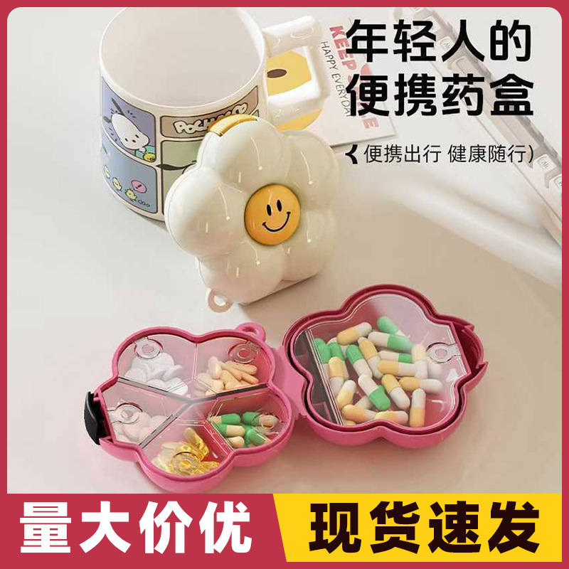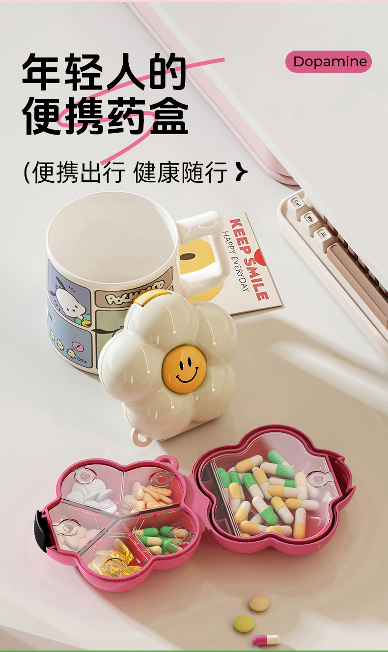 多巴胺花朵便携式药盒随身携带小药盒可爱密封防潮多格迷你分药器