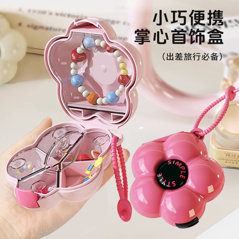 INS花朵迷你便携小药盒分隔旅行首饰收纳盒耳钉项链饰品收纳神器