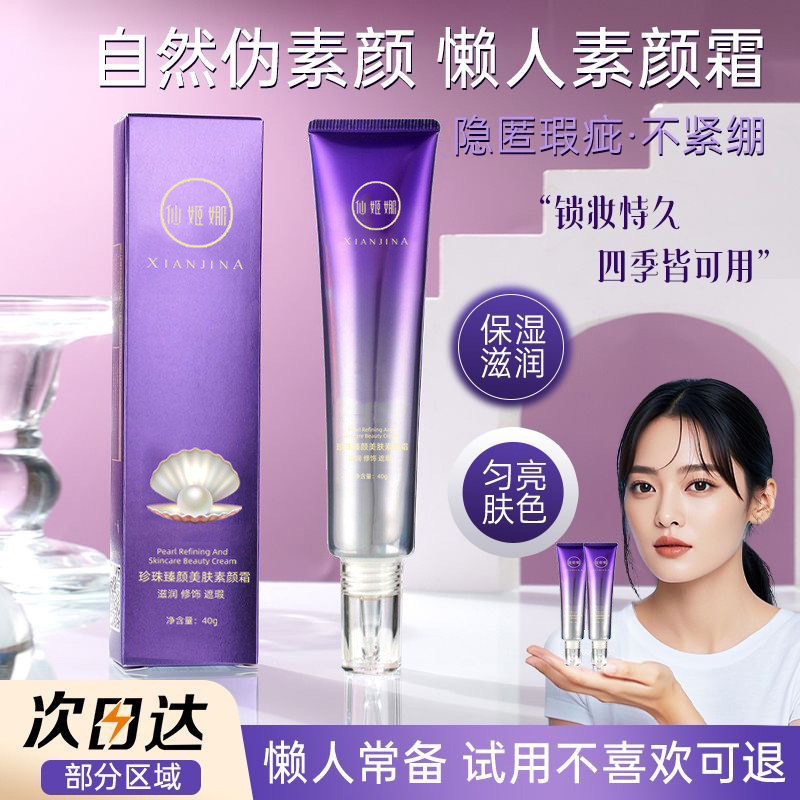 仙姬娜珍珠臻颜美肤水光珍珠紧致素颜霜遮瑕提亮自然清爽不粘腻