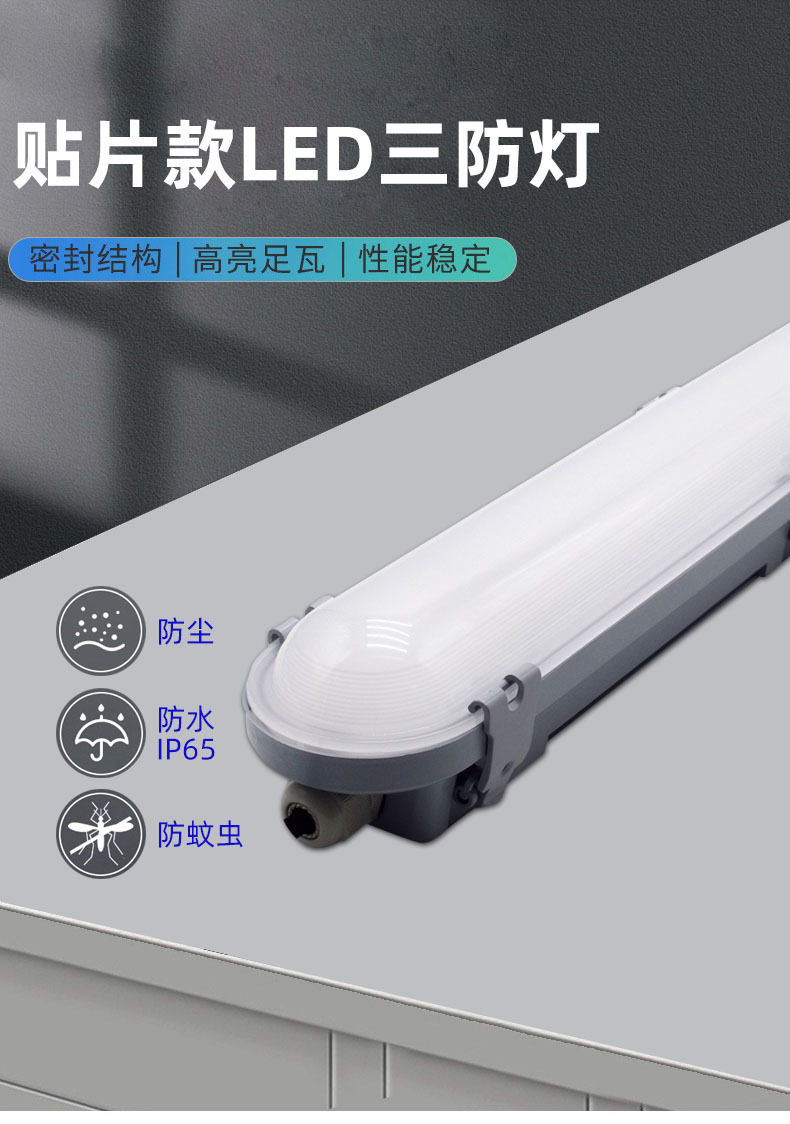 工厂LED三防灯1.2米超亮防潮灯停车场商超车间一体化贴片式三防灯