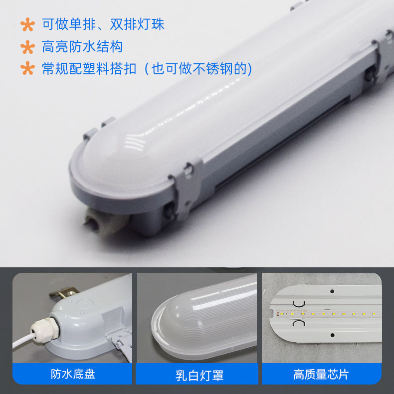led三防灯外壳套件仓库冷库车库防水一体化线条防水阻燃三防支架