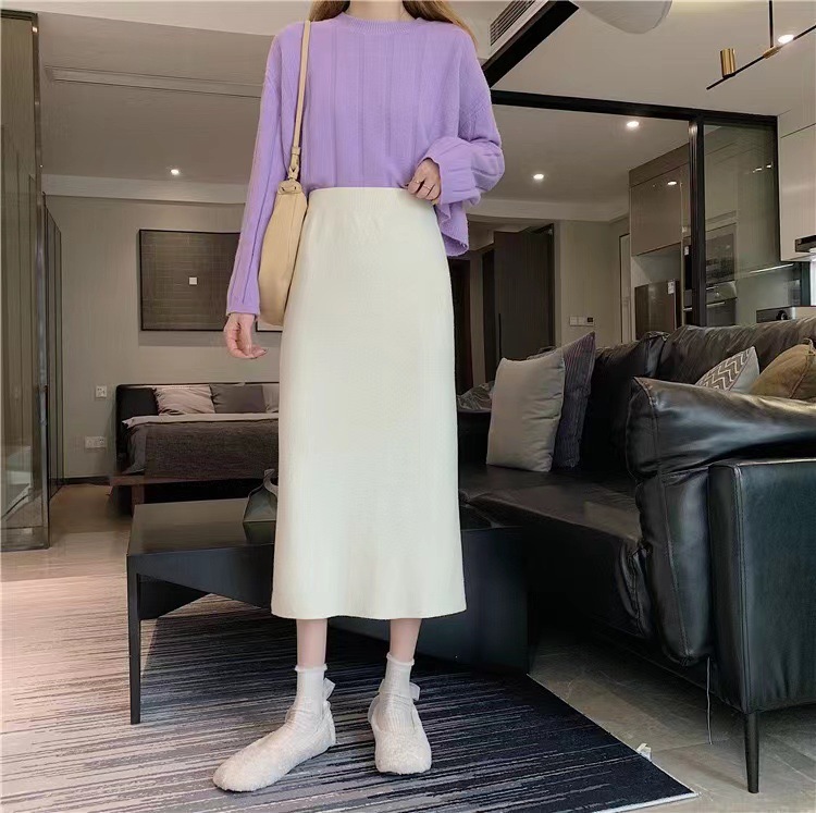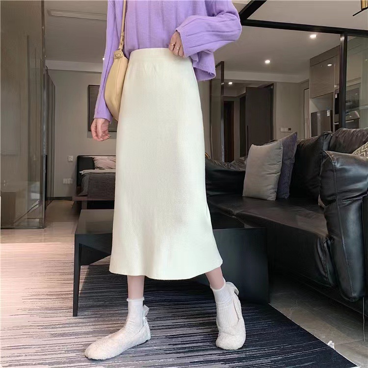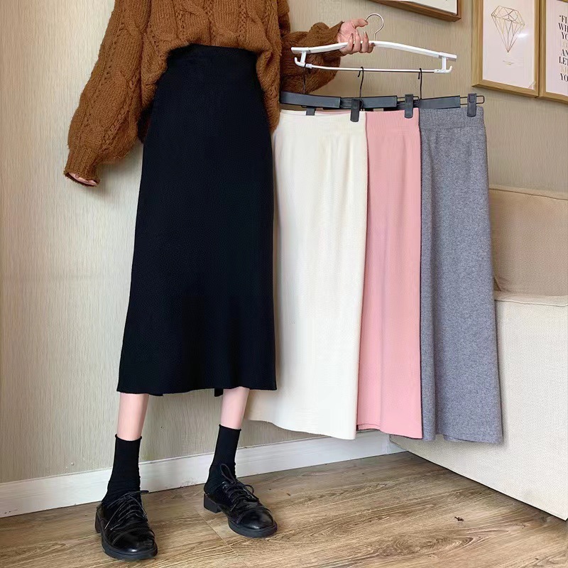 韩系气质显瘦遮胯细加厚针织半身裙字长裙女秋冬新洋气百搭裙子