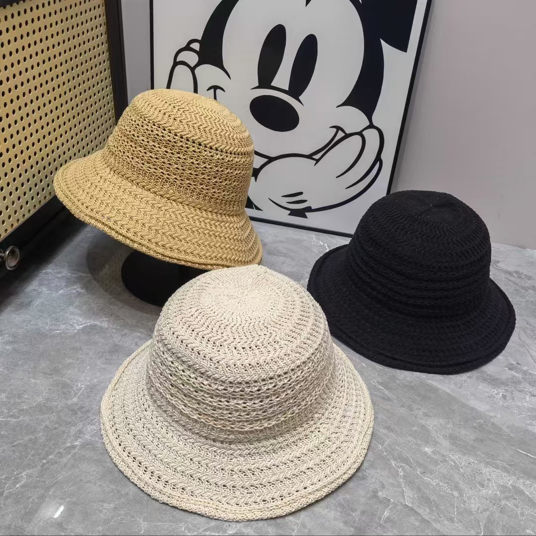 女の子向けの高品質の春夏麦わら帽子、甘い旅行漁師の帽子、中空通気性ニットドーム帽子、無地