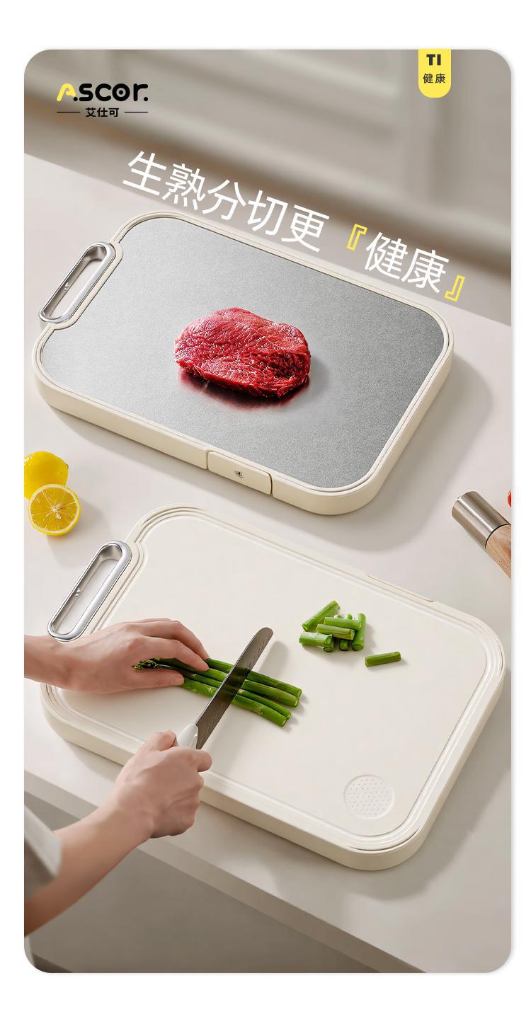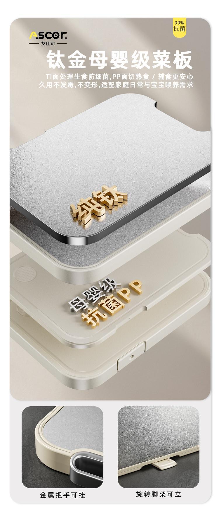 纯钛双面切菜板防霉案板厨房专用抗菌不锈钢砧板食品级塑料菜板