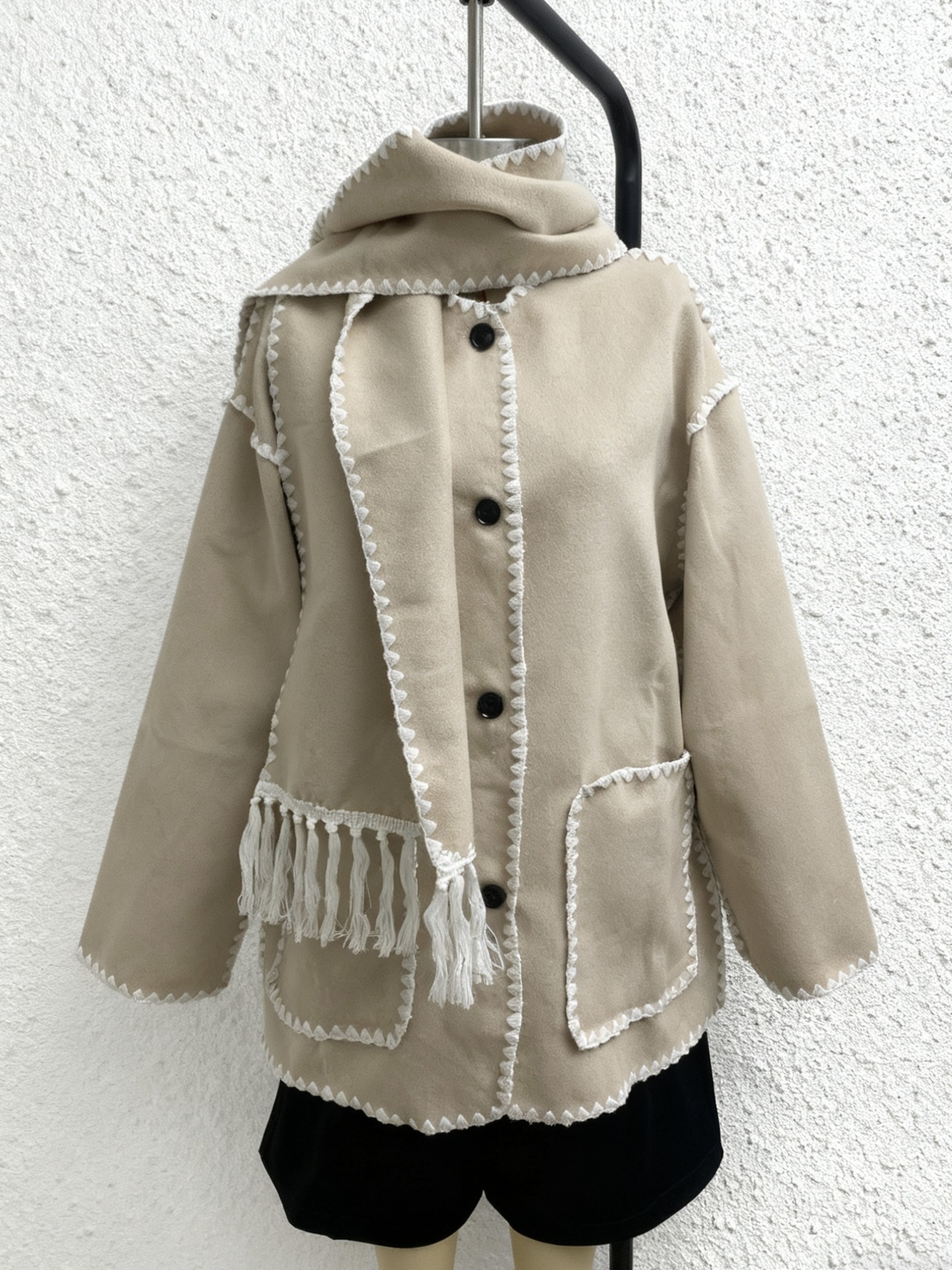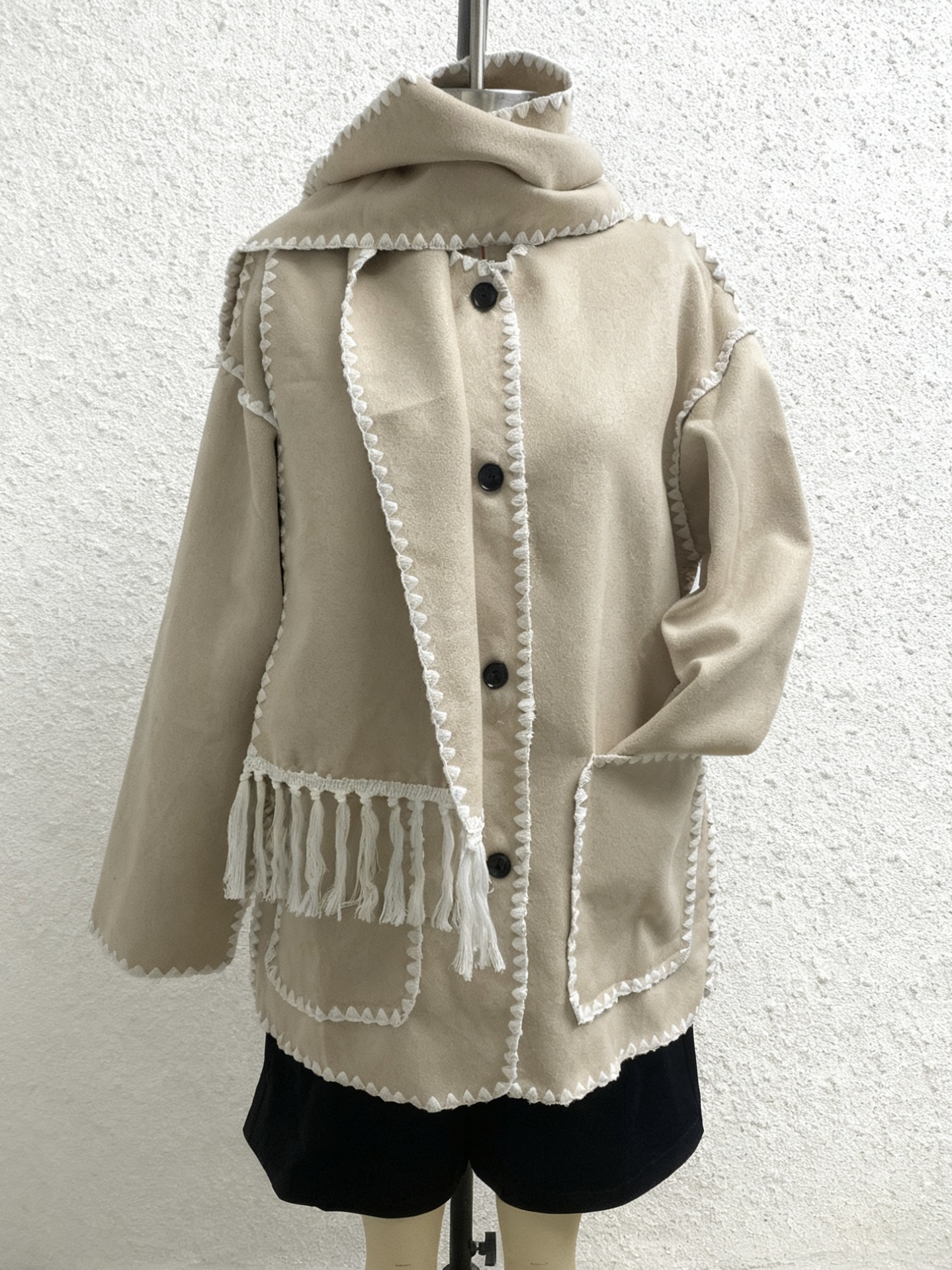 颜色 黑色(带围巾),黑白(带围巾),灰色(带围巾),卡其色(带围巾),咖啡色(带围巾),军绿色(带围巾)