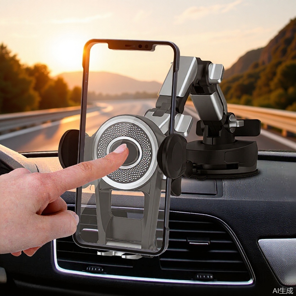 2025 新しいクロスボーダー真空吸盤車磁気ホルダーカーナビゲーション折りたたみ車の携帯電話ホルダー