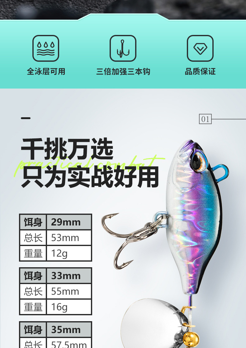 全泳层24g50mm旋转亮片噪音片沉水路亚饵vib远投硬饵仿生假饵鱼饵