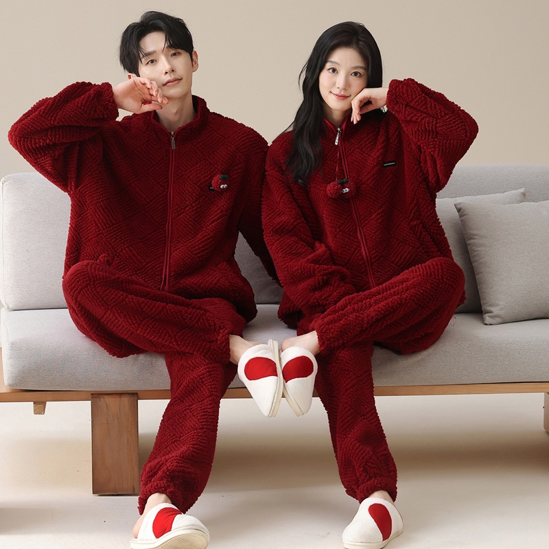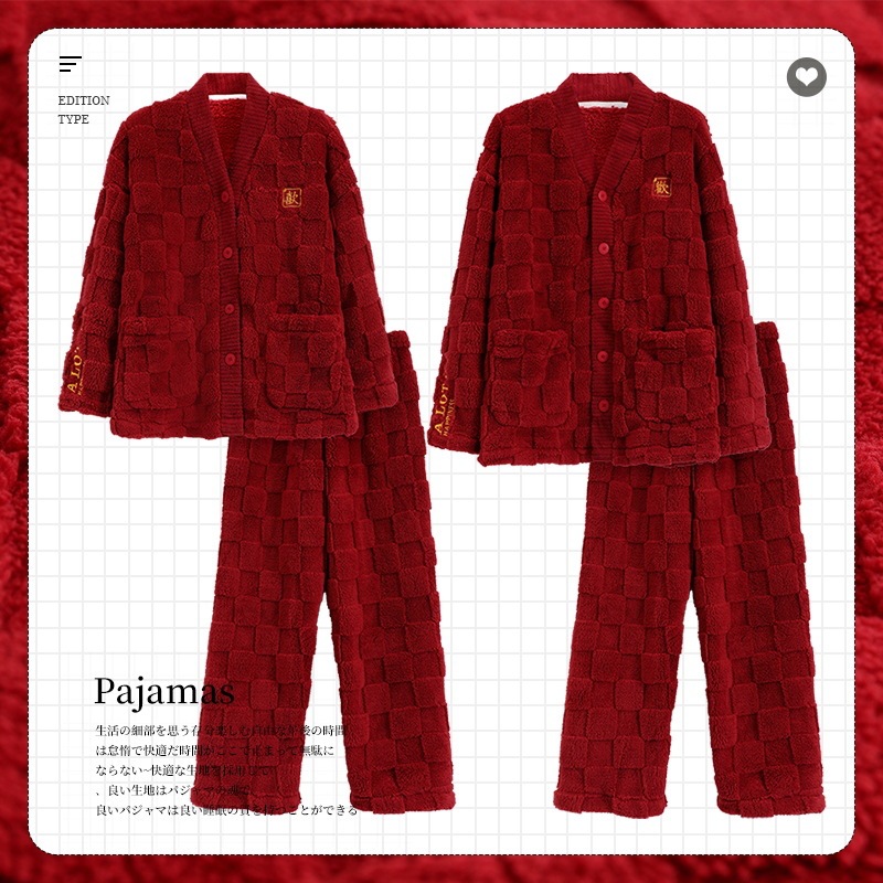 カップルのパジャマサンゴのベルベットは冬にベルベットの赤い本命年結婚保温家庭服フランネルのセットを厚くした
