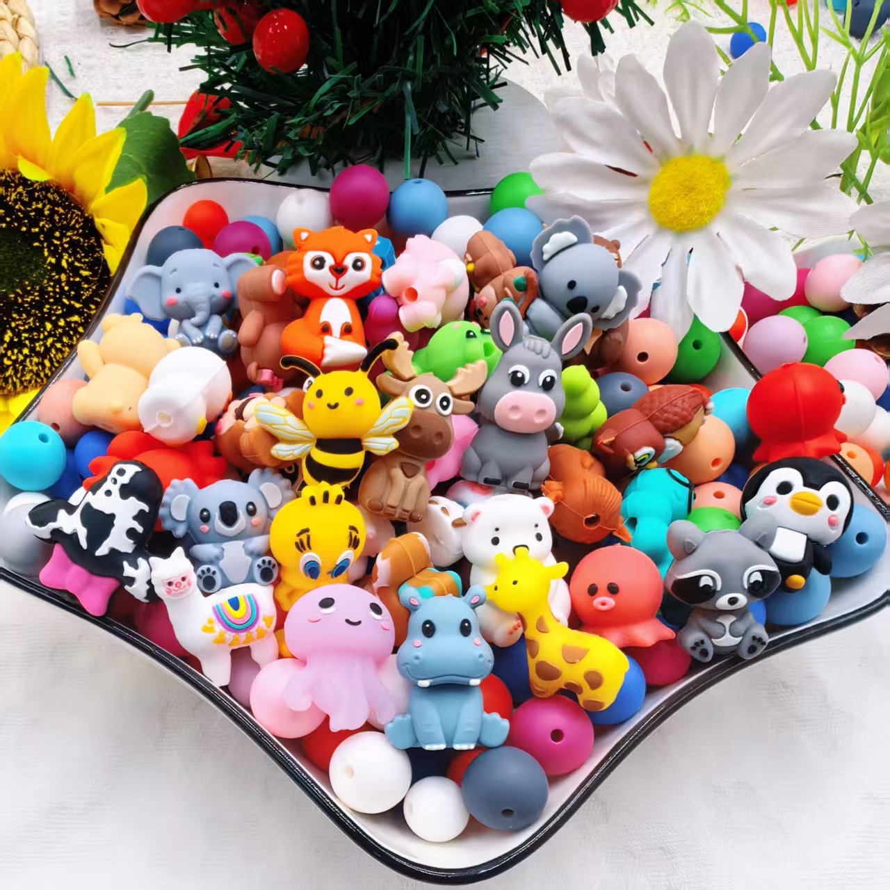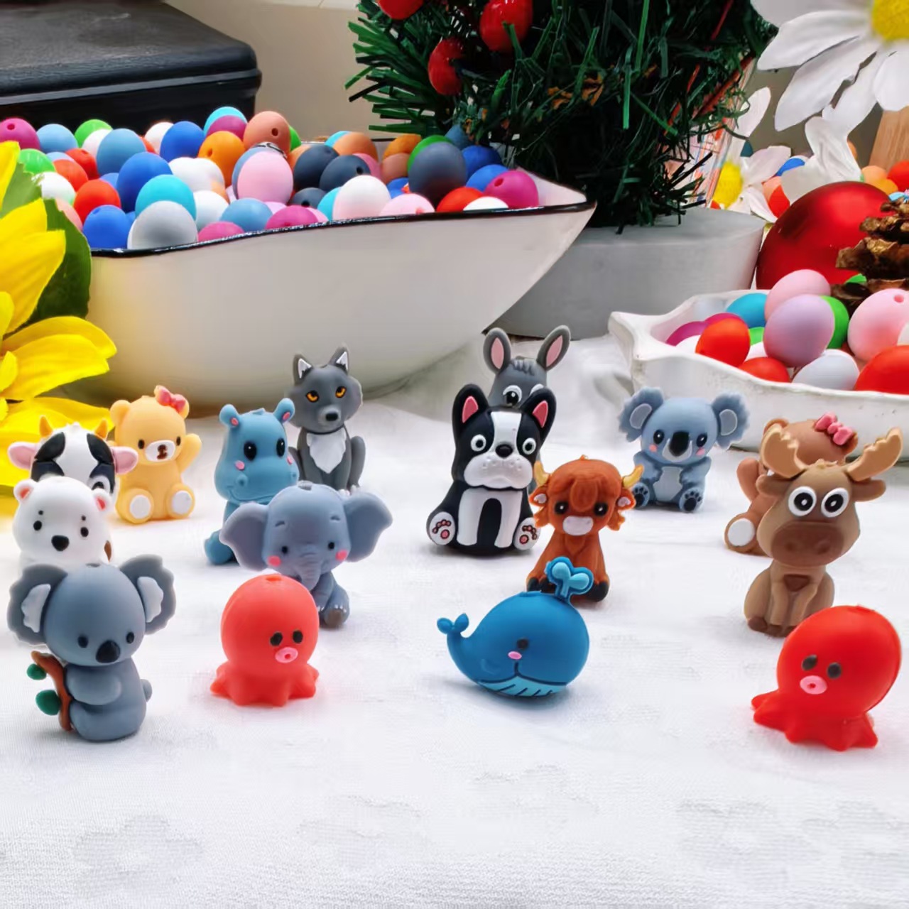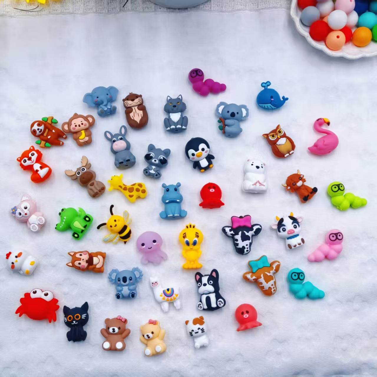 跨境热销新品3D动物造型硅胶卡通珠 子串珠工厂批发现货DIY硅胶珠