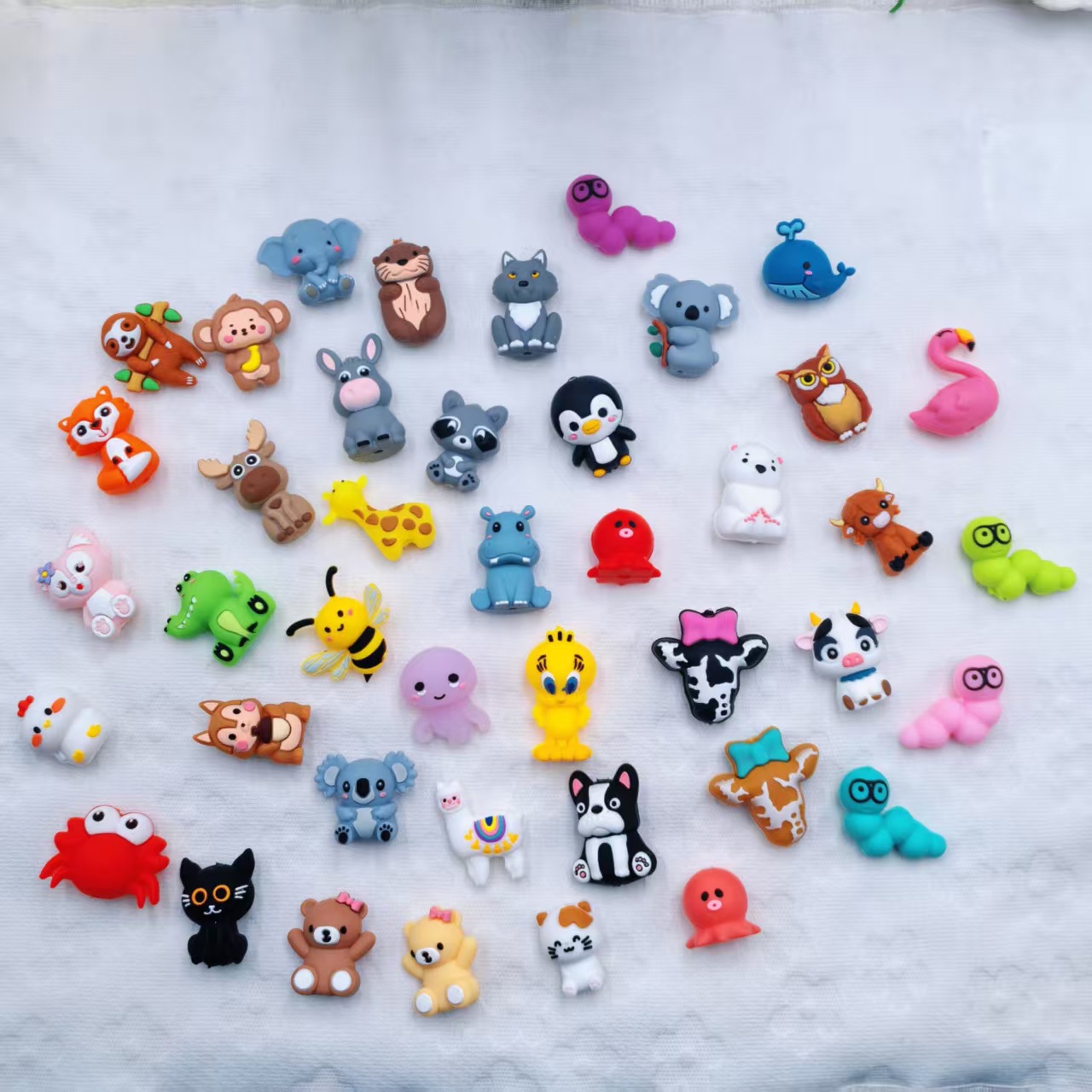 颜色 白色小猫,鲸鱼,卡其色维尼熊,米白维尼熊,驴,考拉,巧克力牛,法斗,企鹅宝宝,水獭,猫头鹰,麋鹿,大灰狼,狐狸,松鼠,狐狸妹妹,树懒,螃蟹,浣熊,猴子,蜜蜂,考拉2,大象,河马,黑猫,鳄鱼,长颈鹿,羊驼,小鸡,麦巴牛,北极熊,火烈鸟,外星章鱼,牛头1,牛头2,章鱼1,章鱼2,毛毛虫-粉色,毛毛虫-松绿,毛毛虫-绿色,毛毛虫-紫色