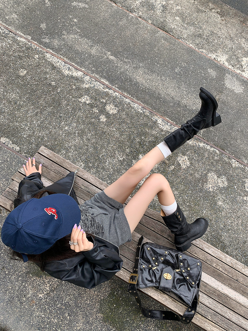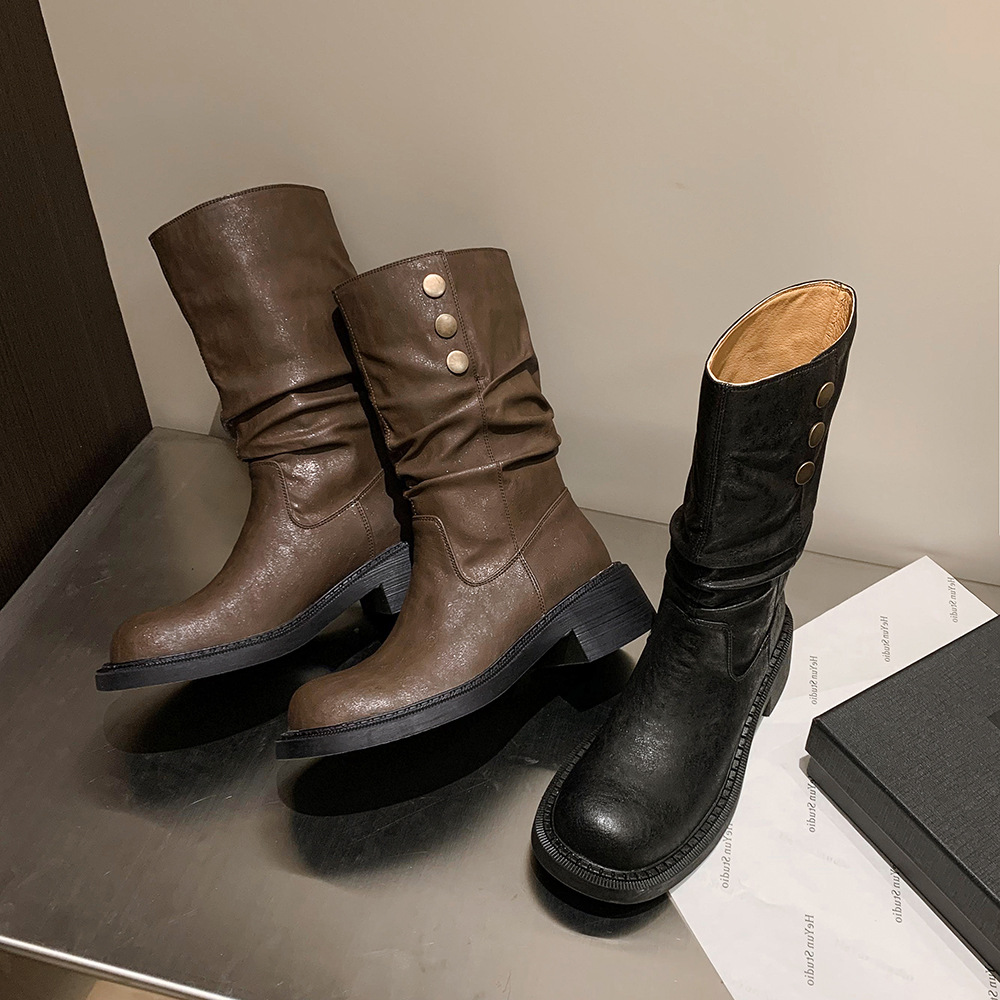 澜柜2025新款复古两穿西部靴堆堆靴中筒长靴子骑士靴马丁靴女秋冬
