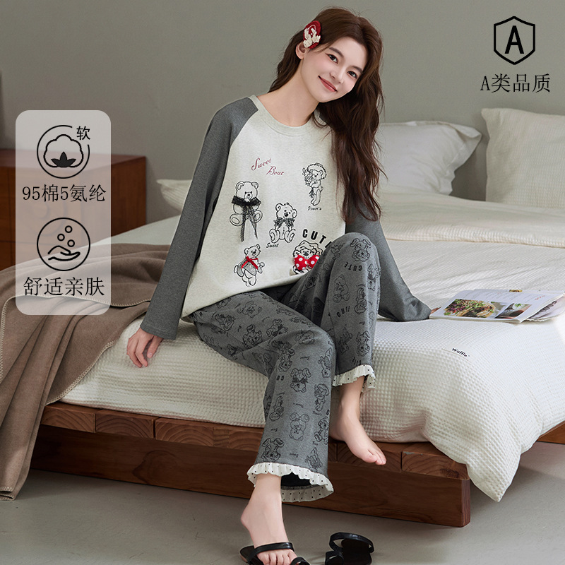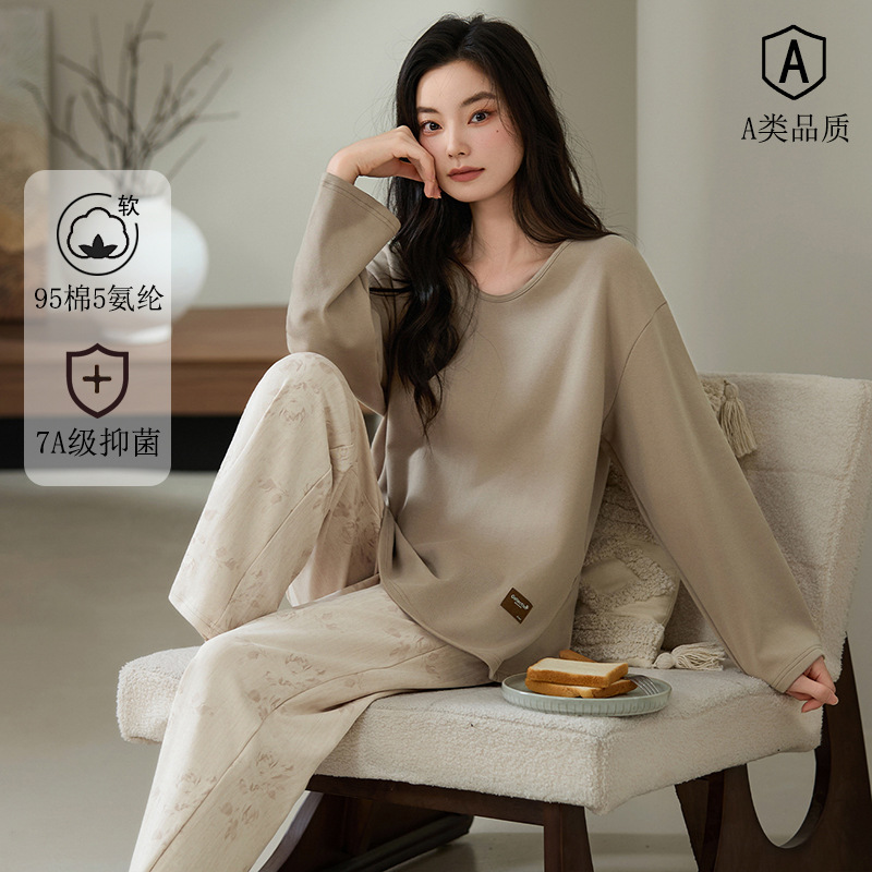 A类抗菌95棉女士睡衣女款秋冬季纯棉长袖大码高级感爽棉家居服女