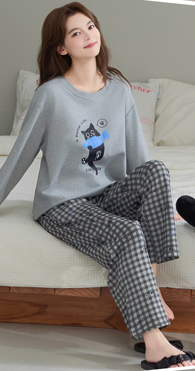 A类抗菌95棉睡衣女秋冬季纯棉长袖女士卡通大码拉架爽棉家居服女