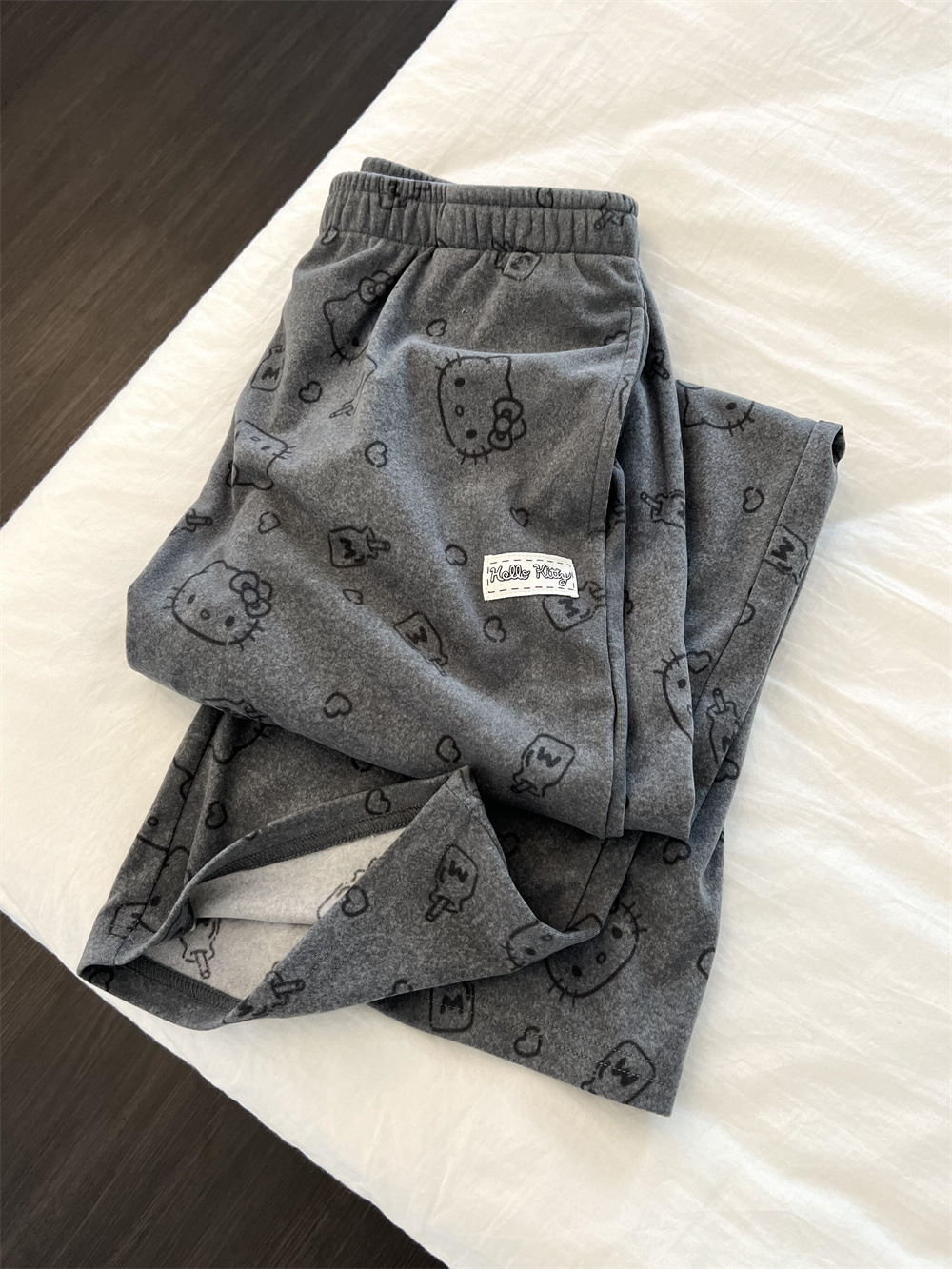 韩系可爱卡通凯蒂猫印花睡衣女早秋新款大码长袖长裤家居服两件套