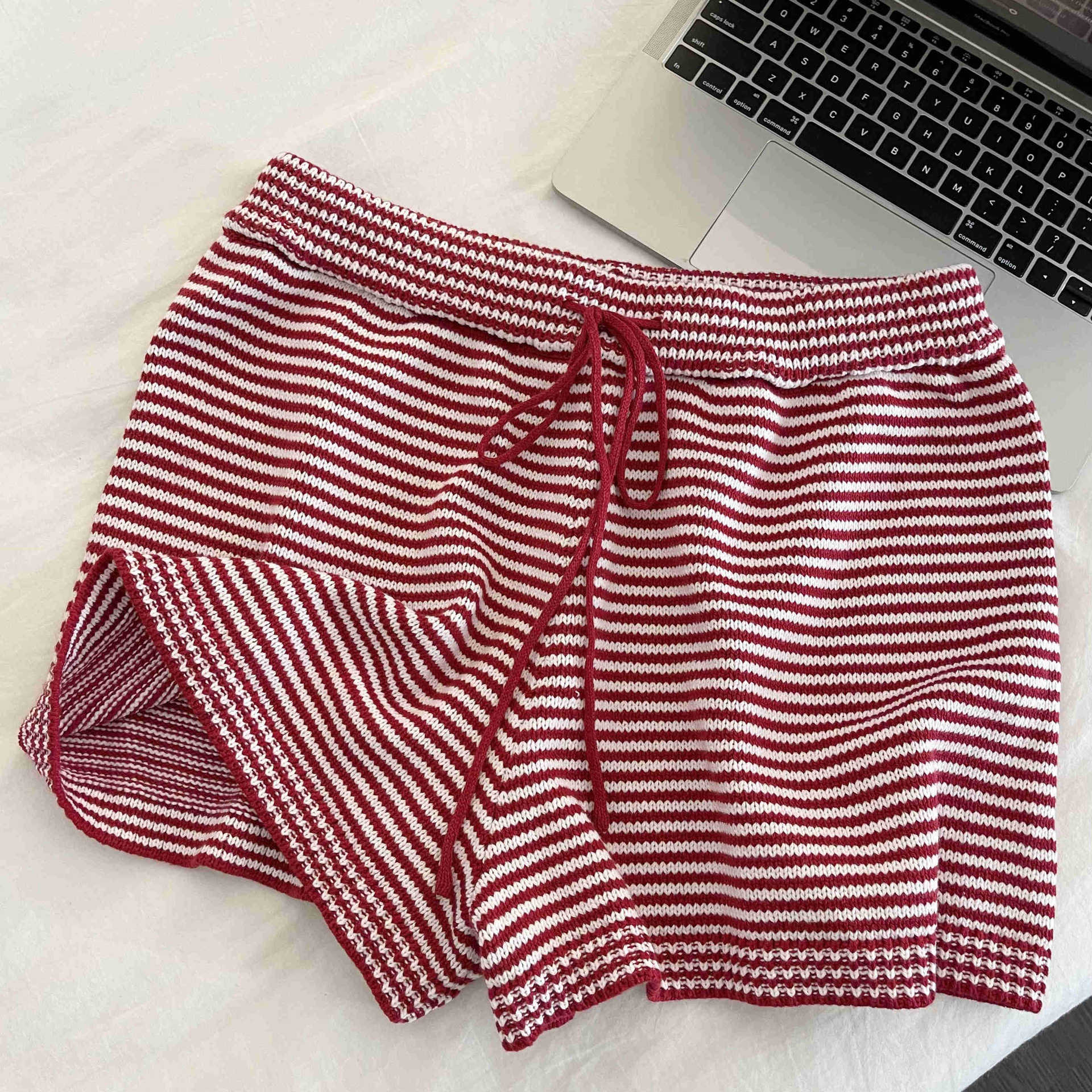 【现货】韩系简约慵懒条纹睡裤女夏新款休闲风高腰短裤家居服