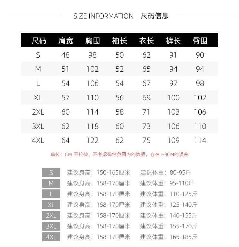 尺码 S(建议80~95斤),M(建议95~110斤),L(建议110~125斤),XL(建议125~140斤),2XL(建议140~155斤),3XL(建议155~170斤)